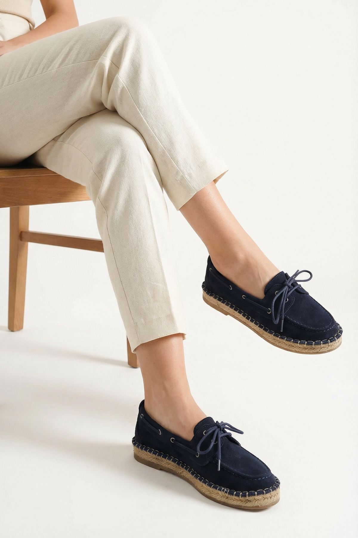Kadın Hakiki Deri Süet Bağcıklı Espadril