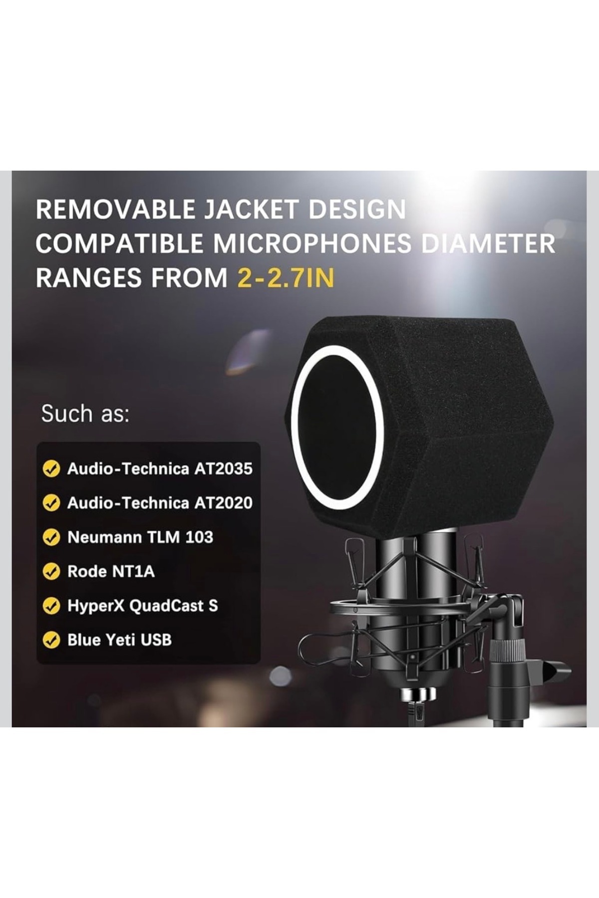 Mikrofonun arka ve yan kısımlarını çevreleyen yalıtım paneli, yankı ve istenmeyen ses yansımalarını sınırlamaya destek olur.