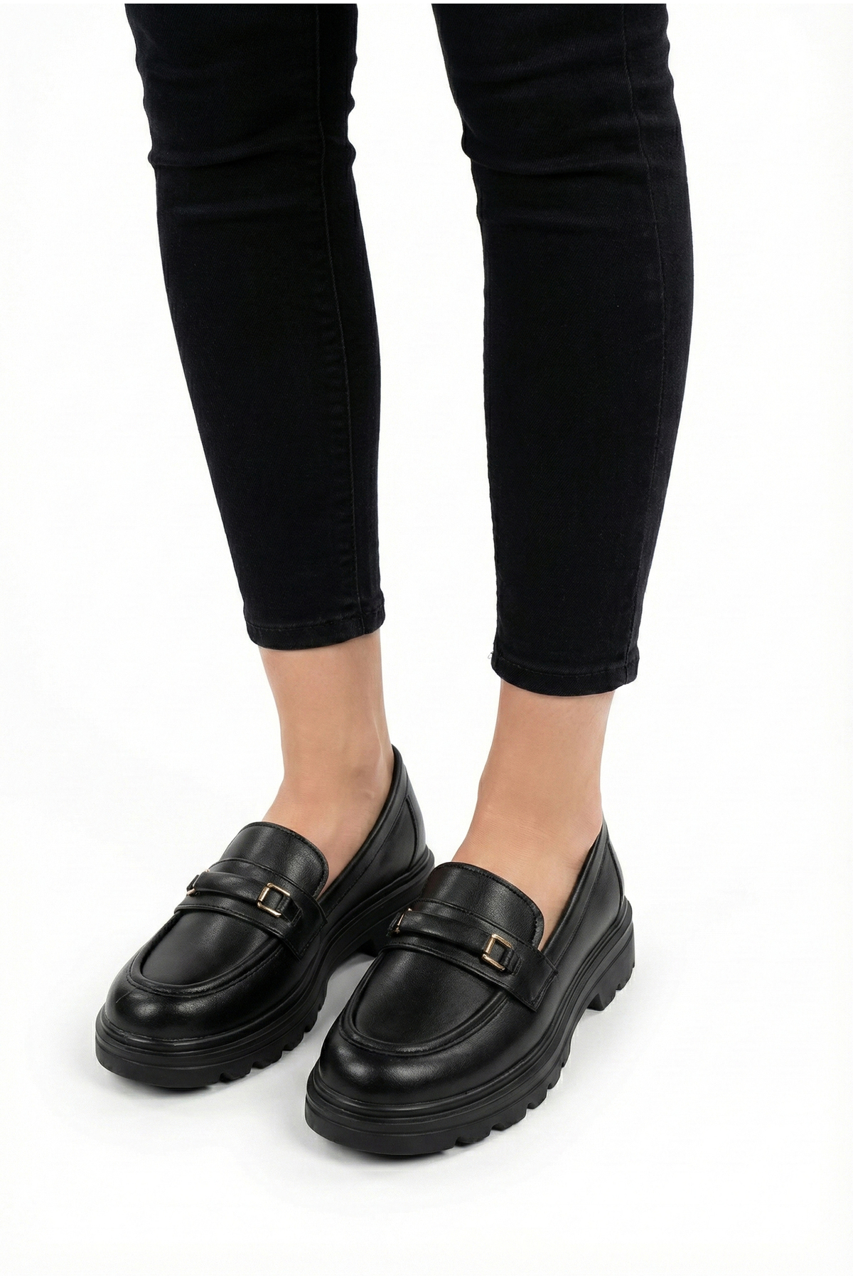Kadın Loafer Babet Kalın Taban Ortopedik Rahat Hafif Taban Deri Cilt