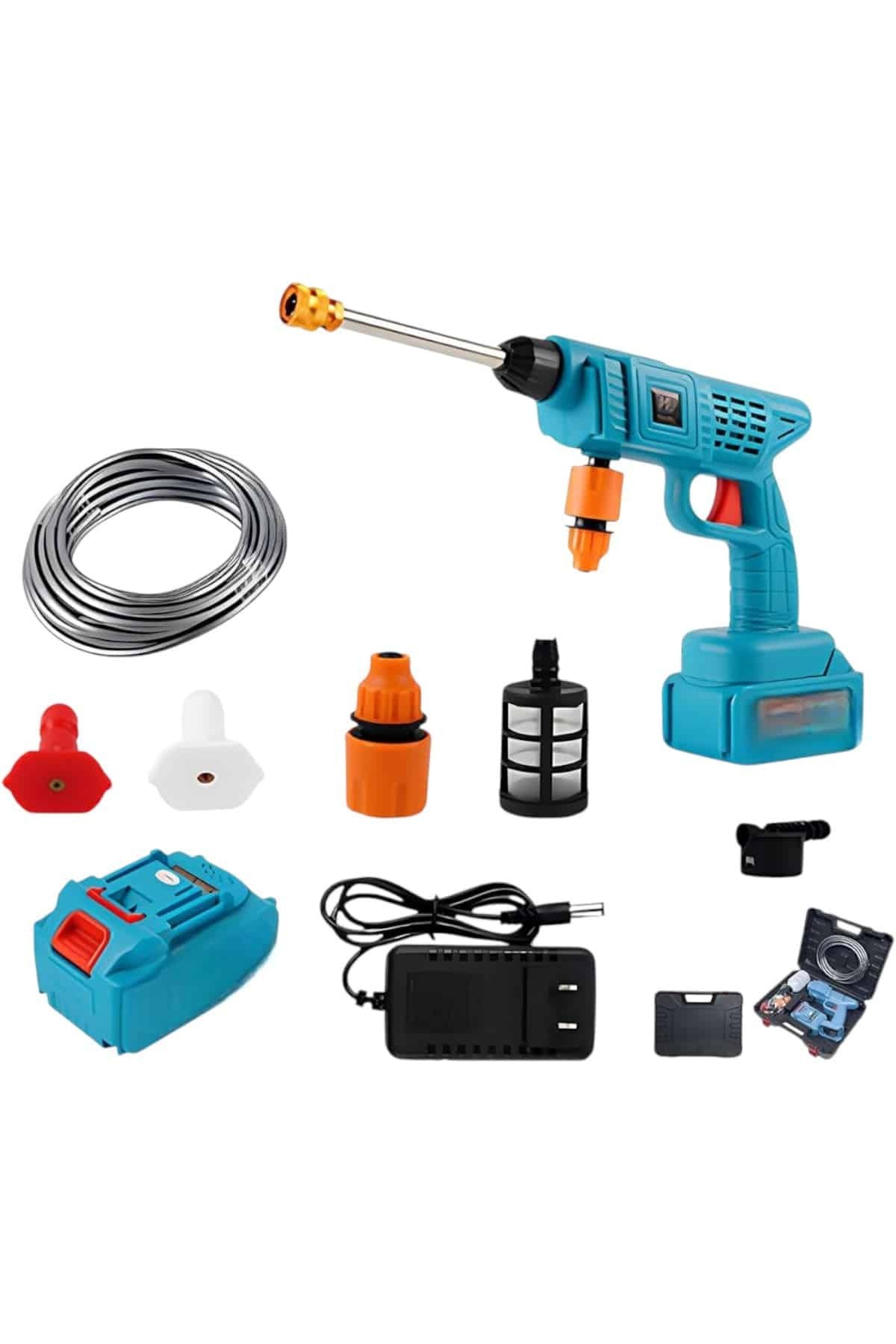 Güçlü 300W Motor ve Yüksek Basınç Kapasitesi Bu kablosuz yüksek basınçlı yıkama makinesi, 300W güçlü motoru ve maksimum 30 Bar (350 PSI) su basıncı ile, araba yıkama, bahçe sulama, tarımsal sulama ve genel temizlik işlemlerinde üstün sunar.