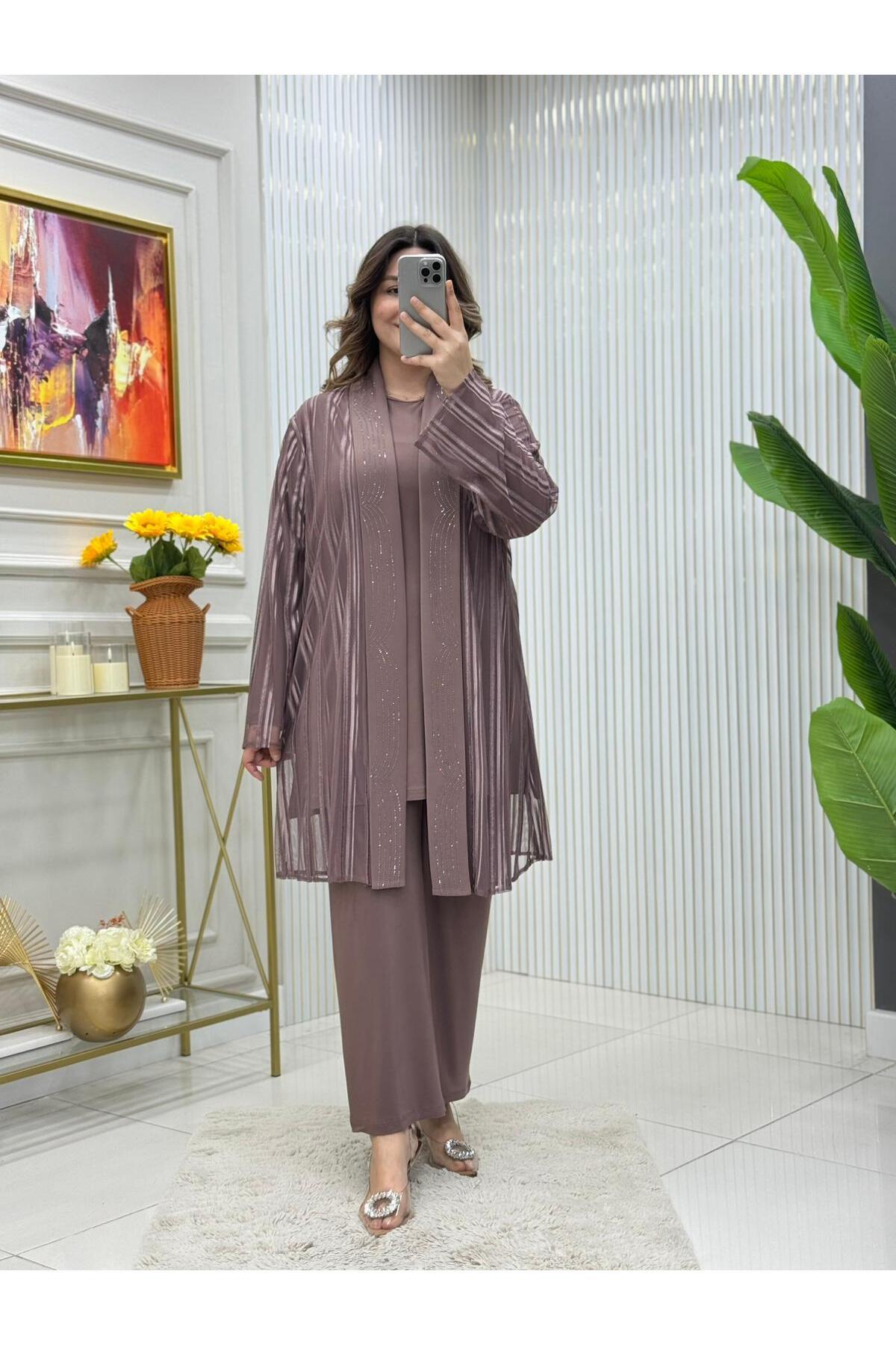 BÜYÜK BEDEN DANTELLİ ÜÇLÜ TAKIM