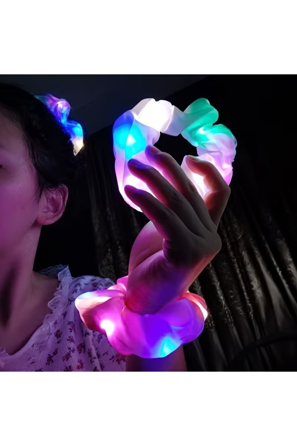 Pembe Renk Led Işıklı Lastikli Saç Tokası - 3 Modlu Festival & Parti Saç Tokası