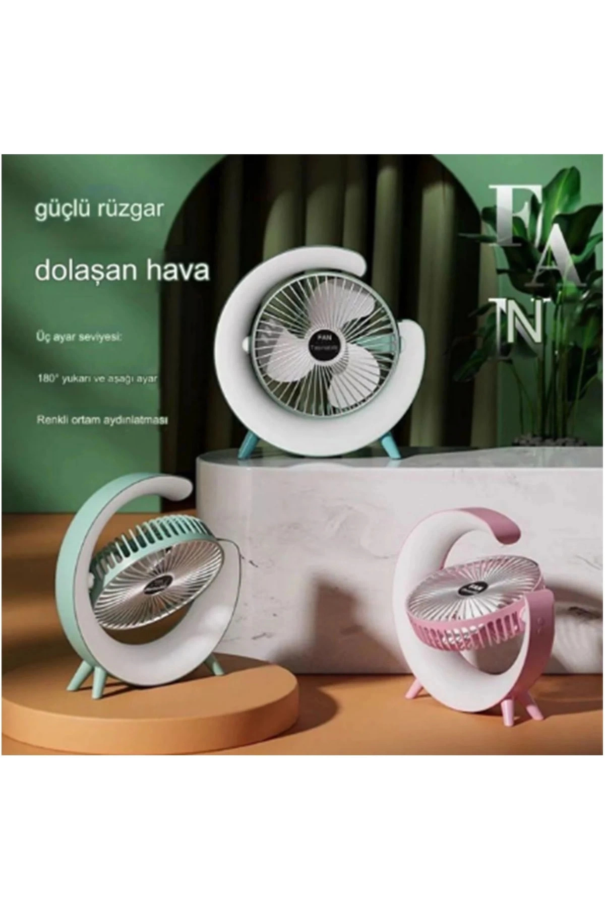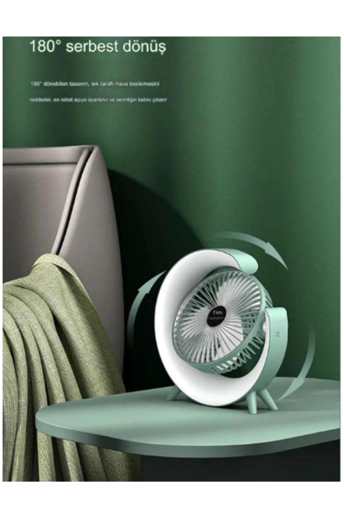 Masaüstü Vantilatör Usb Şarjlı Rgb Led Işıklı 3 Kademeli 180° Ayarlanabilir Soğutucu Fan Yeşil