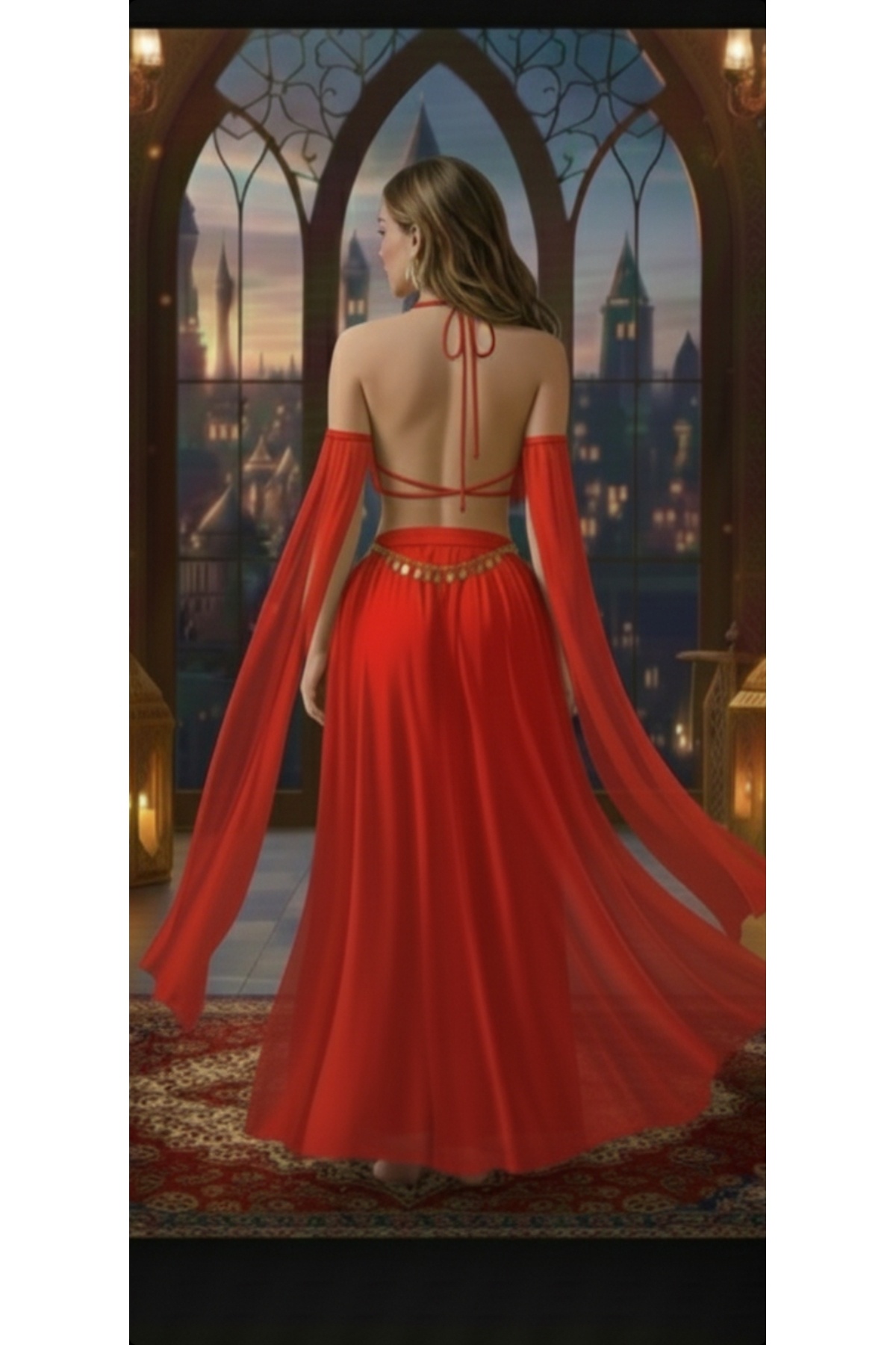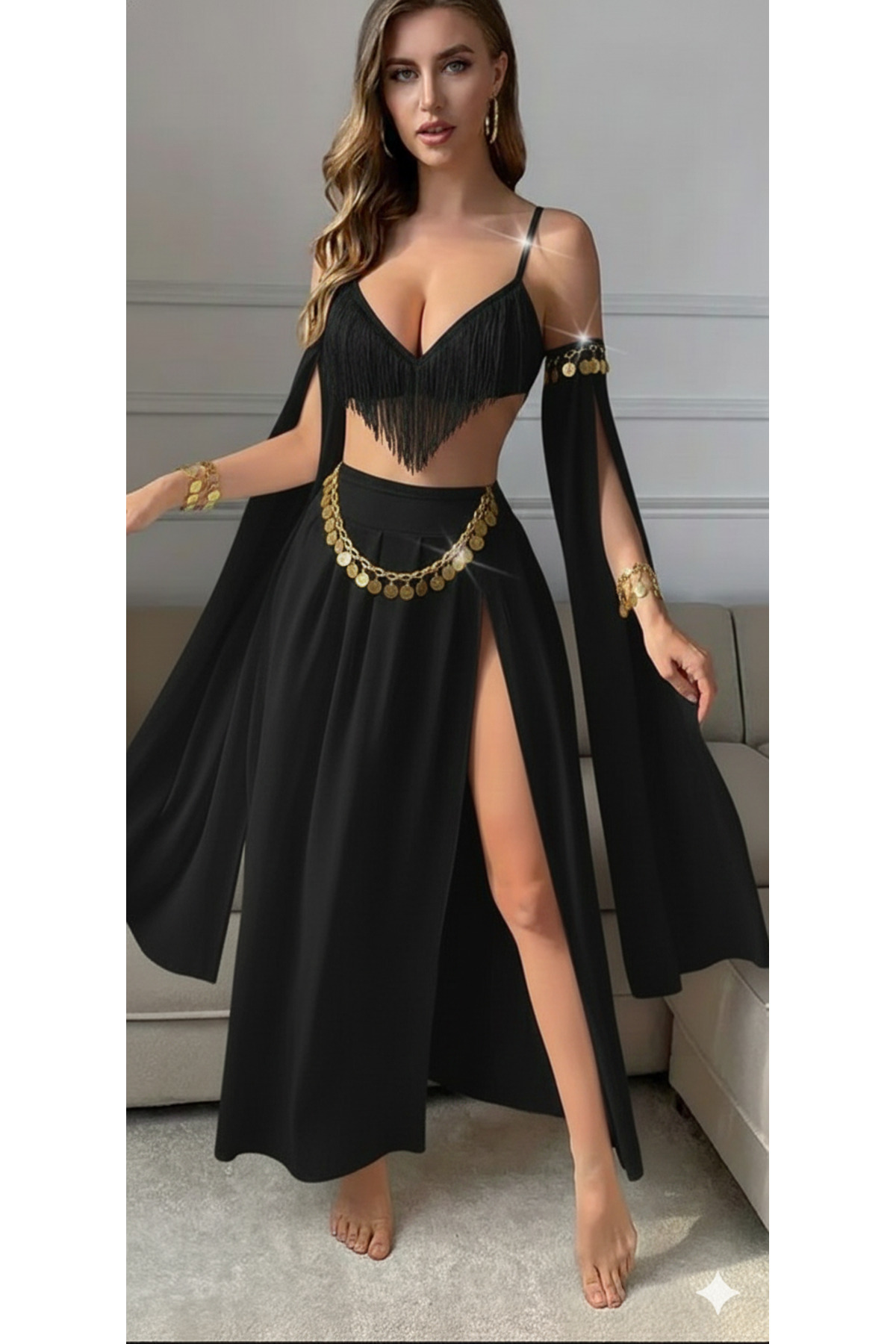- 5 parça ürünümüz etek ,sütyen, 2 adet kol 2adet halhal bir tan likralı zincir ayakta takılarak şifon kumaş tasarımı ile zarif bir görünüm sunar ve boynunuzu nazikçe sarar.