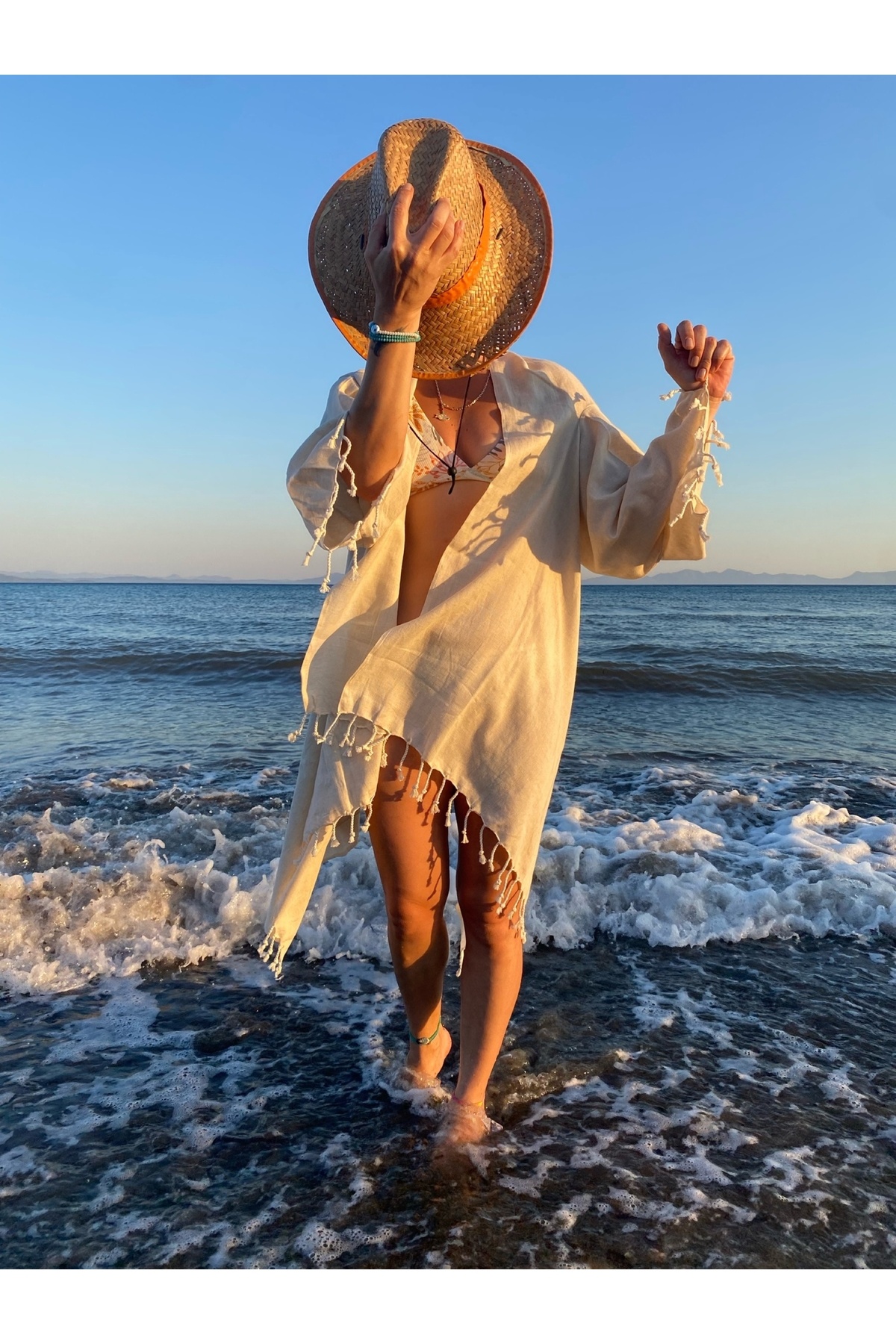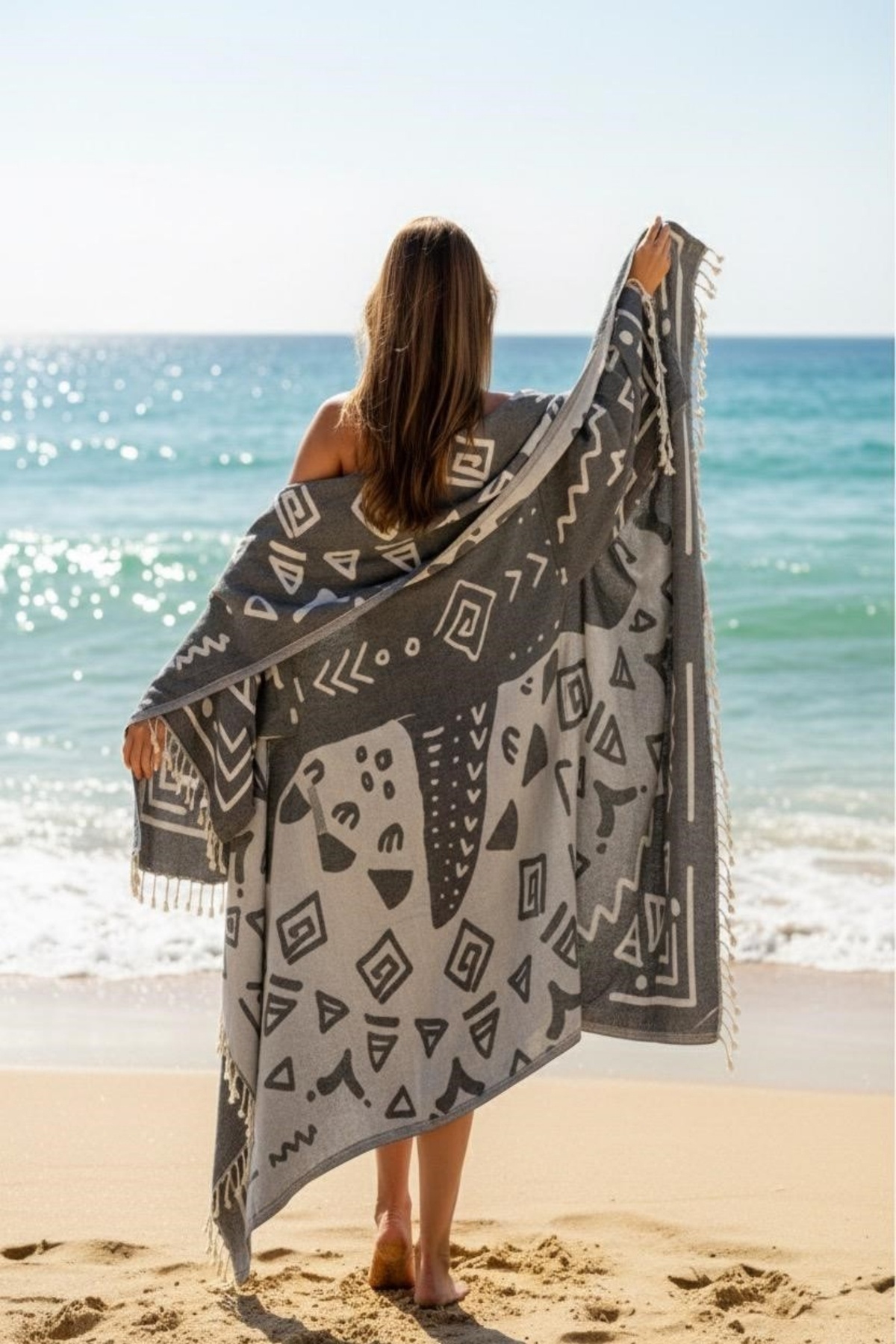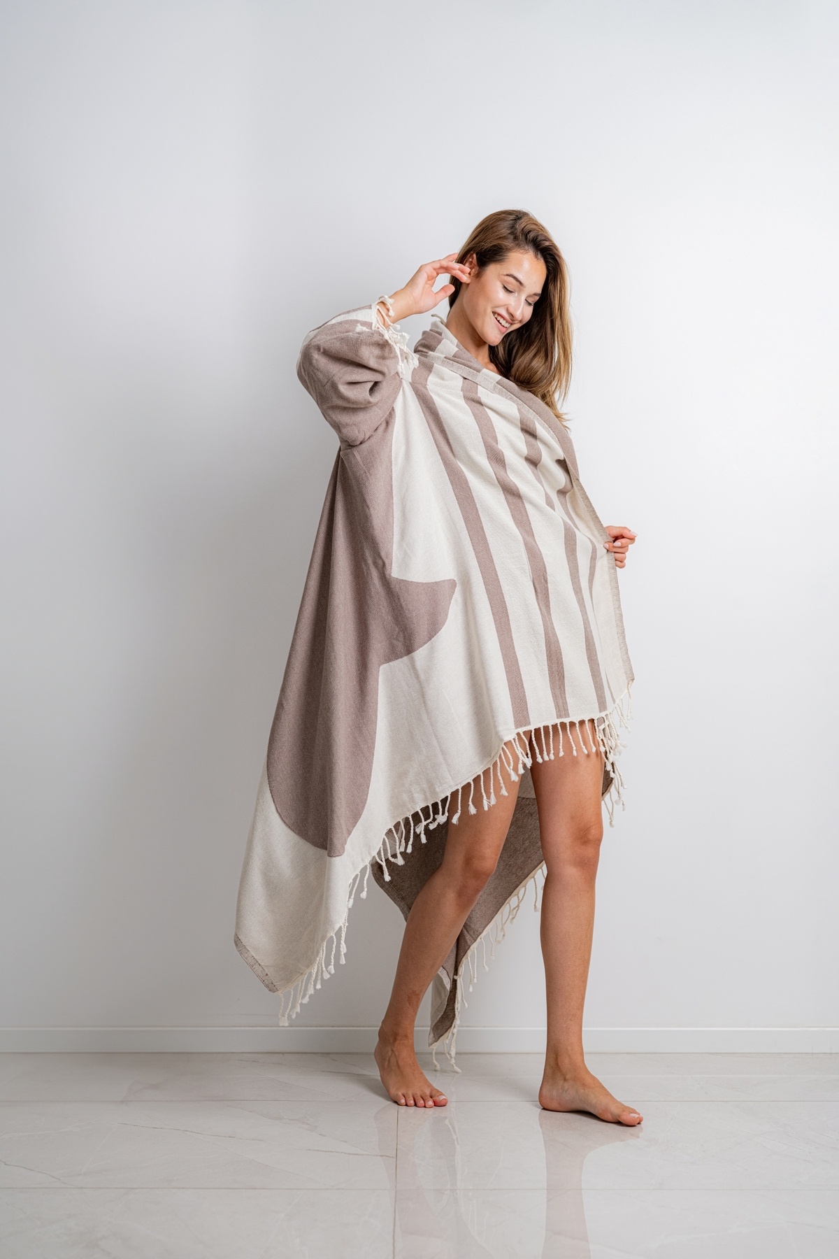 Giyilebilir kollu peştemallerimiz %100 pamuktan üretilmiştir ,desenleri baskı değil dokumadır, imalat aşamasında sağlığa zararlı hiç bir kimyasal madde kullanılmamıştır.130x170 cm ölçülerinde jakarlı dokuma pamuk peştemallerimizin üzerine eklenen kolları ile ister şezlongunuzda kullanabileceğiniz peştemal isterseniz güneşin zararlı ışınlarından korunurken doğallığı ile şıklığınızı ön plana çıkaracak, ihtiyacınız olan serinlik ,konfor, şıklık ve stil sahibi olmanıza yardımcı olacak plaj giyimi olarak da kullanabilirsiniz.