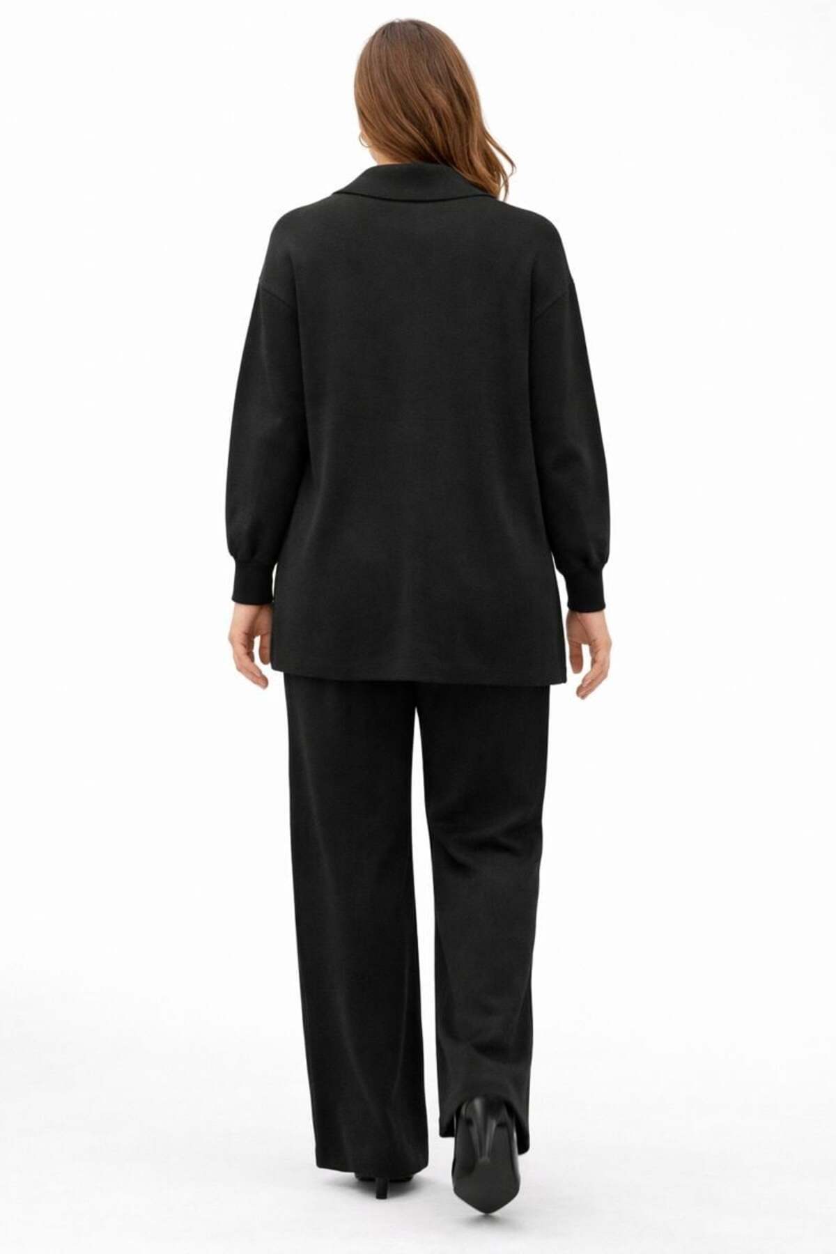 Büyük Beden Düğmeli İkili Triko Takım Siyah