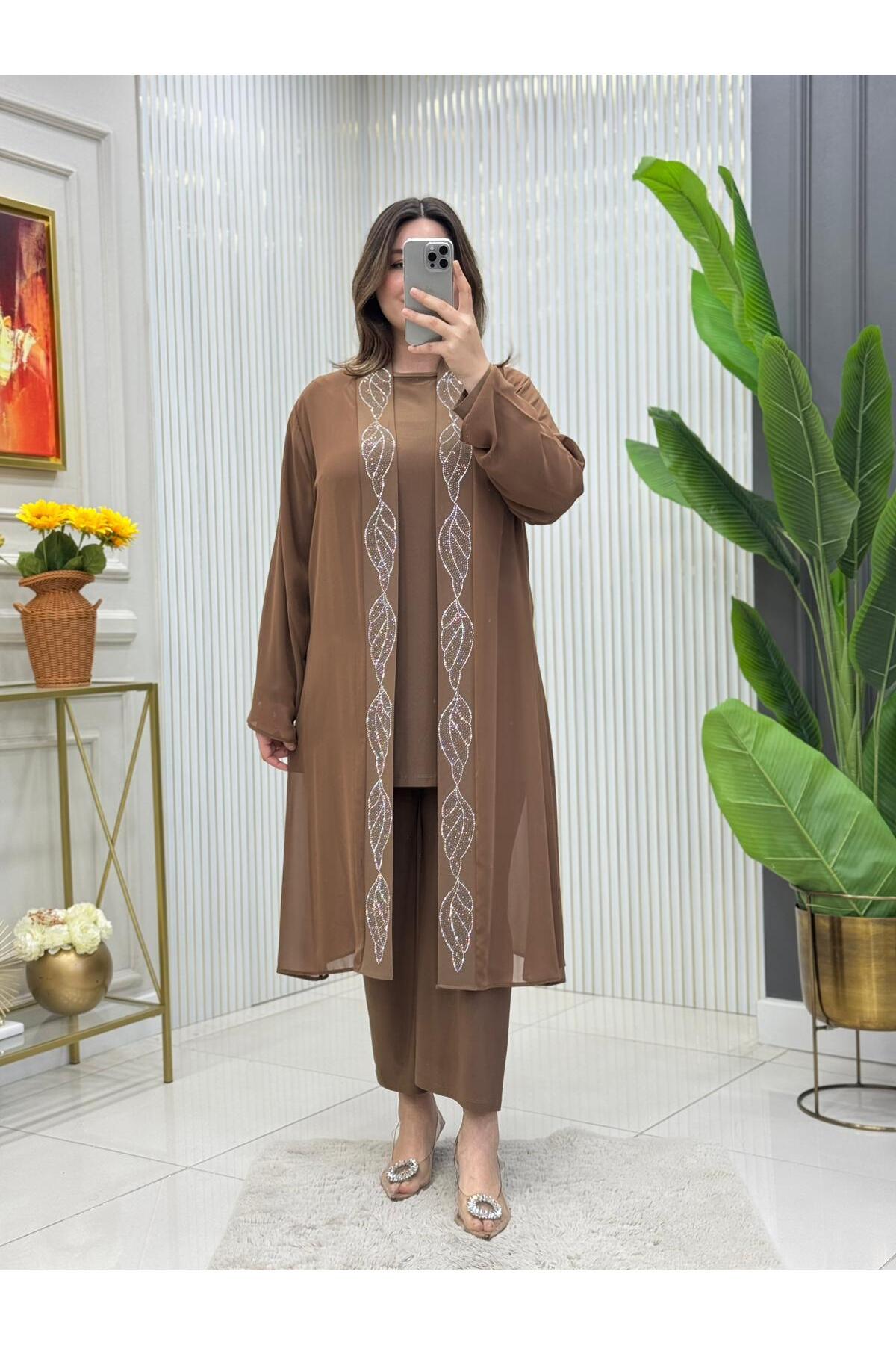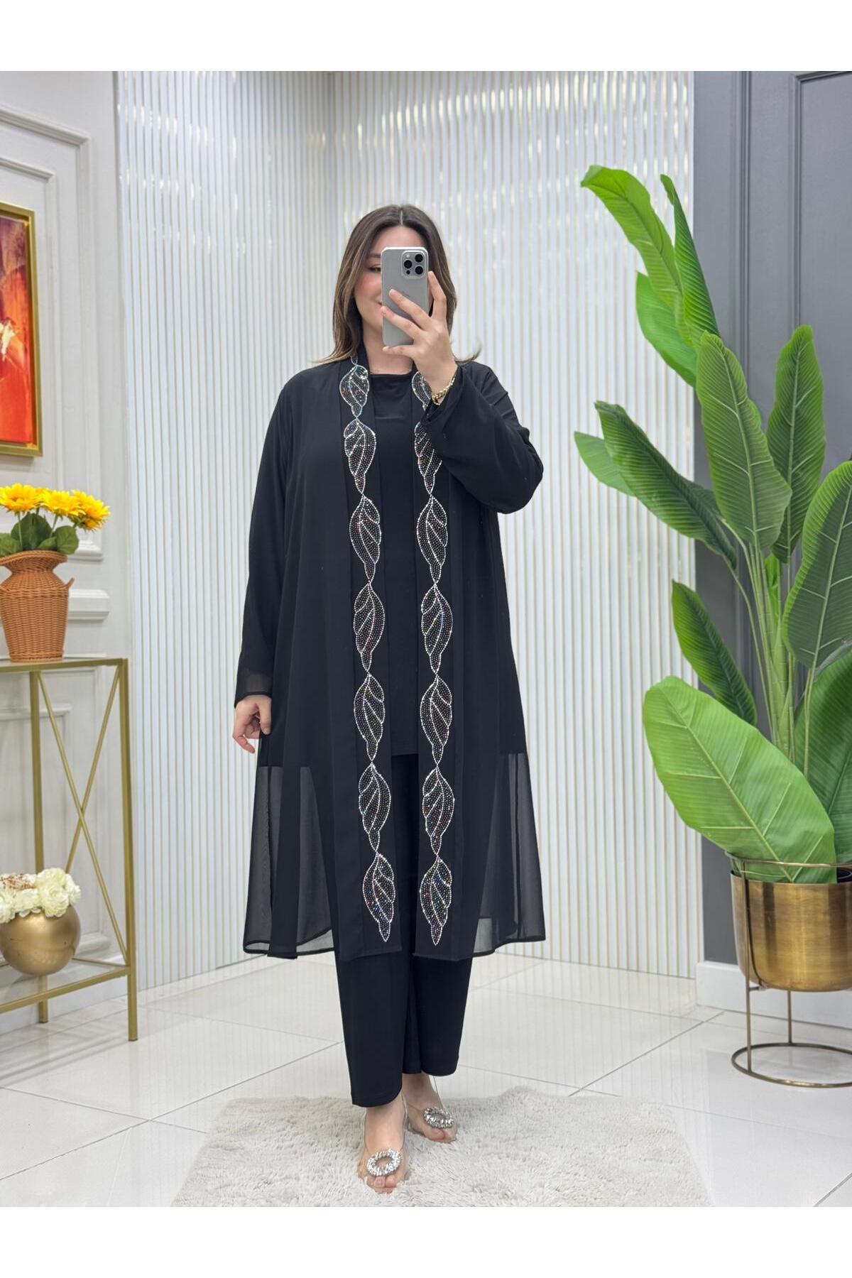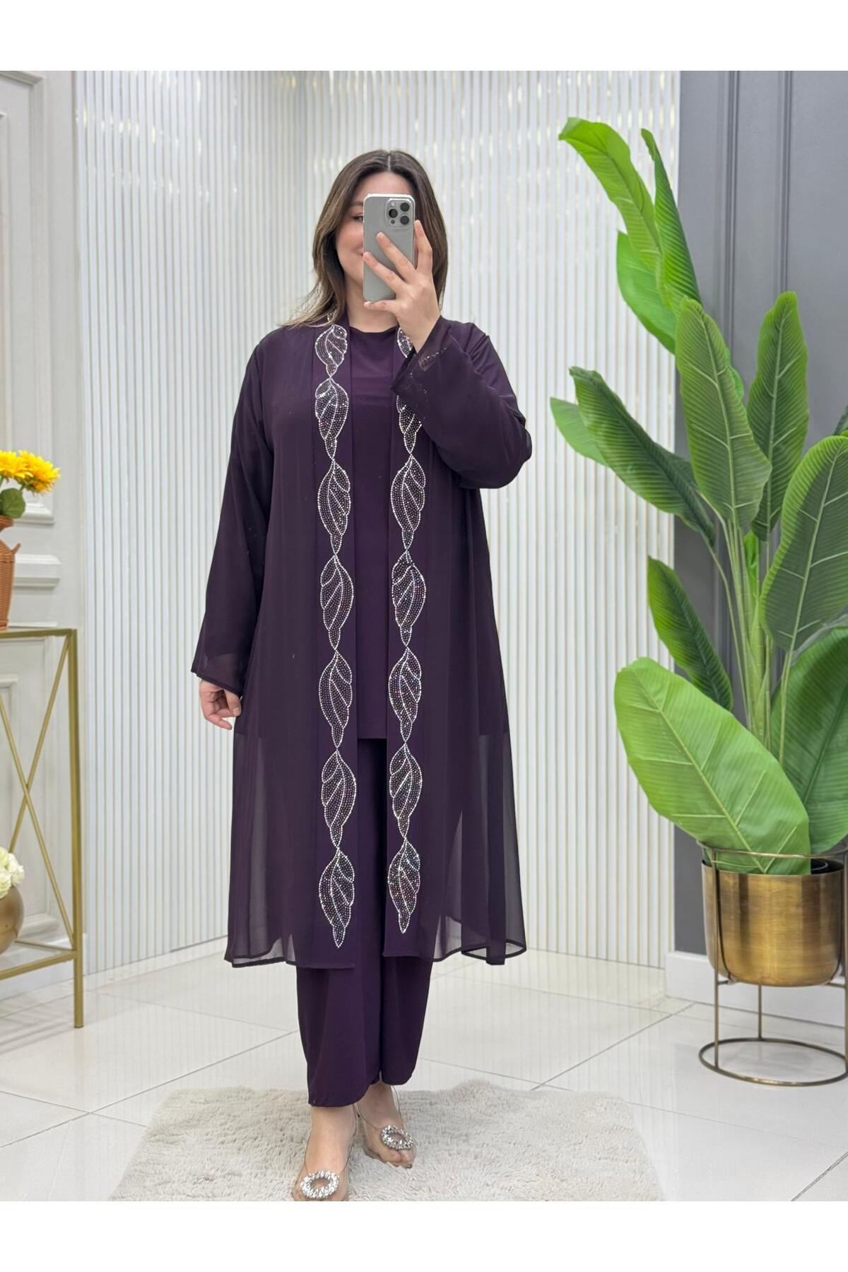 BÜYÜK BEDEN TAŞ BASKILI ÜÇLÜ TAKIM