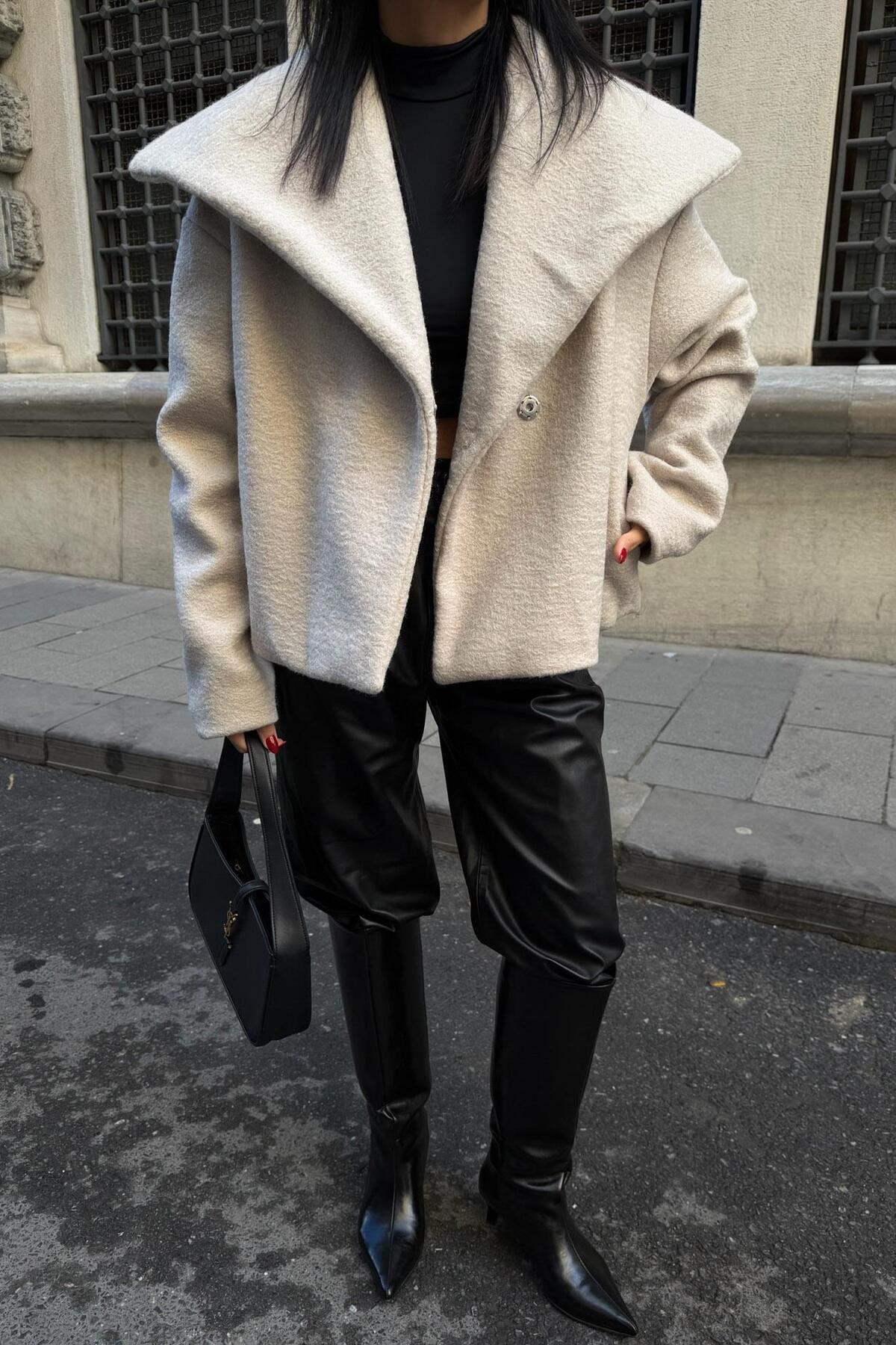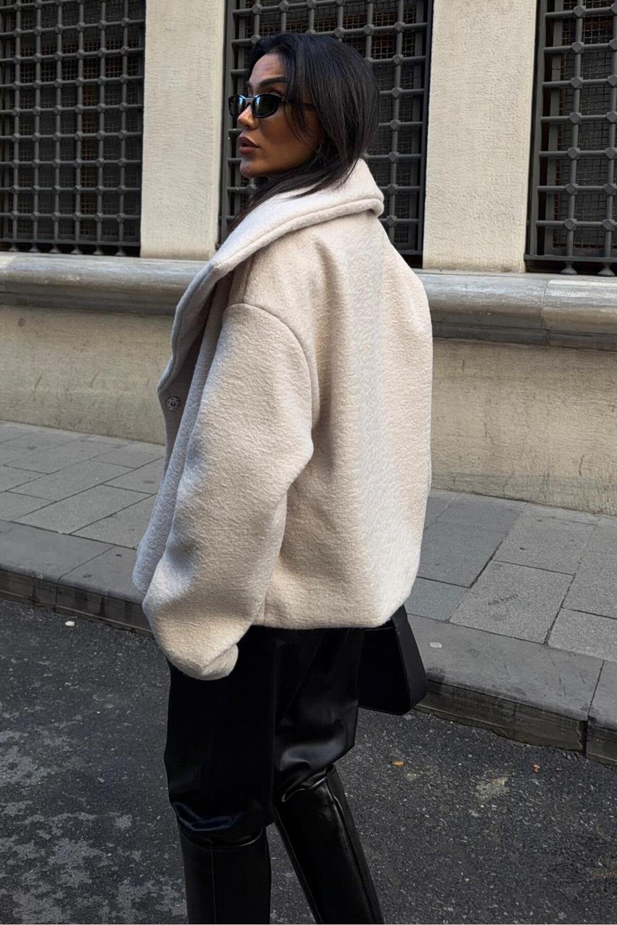 Kamyoner Yaka Kaşe Kaban 7082 R10-E-K4