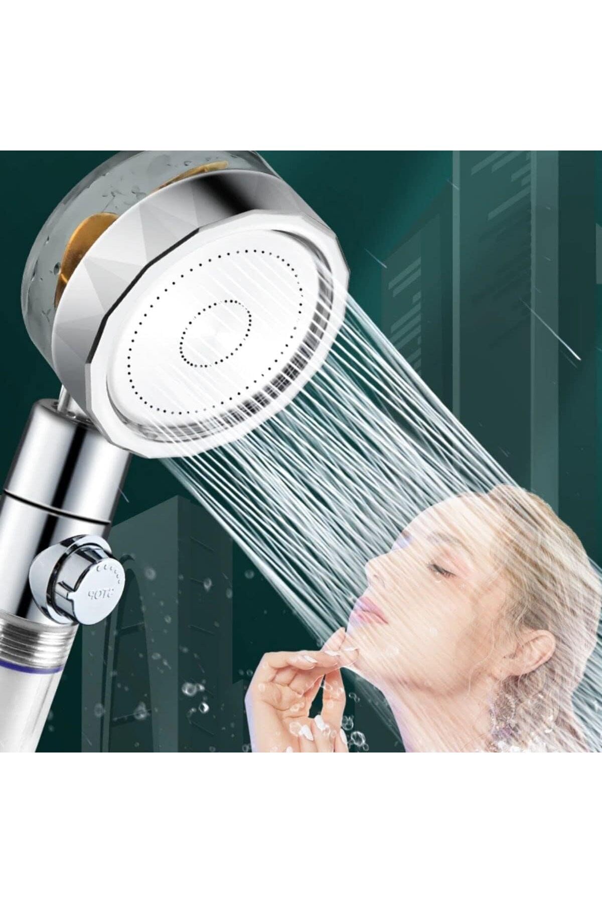Turbo Pervaneli ve Filtreli Su Tasarruflu 360 Derece Dönebilen Ayarlanabilir Tazyikli Duş Başlığı