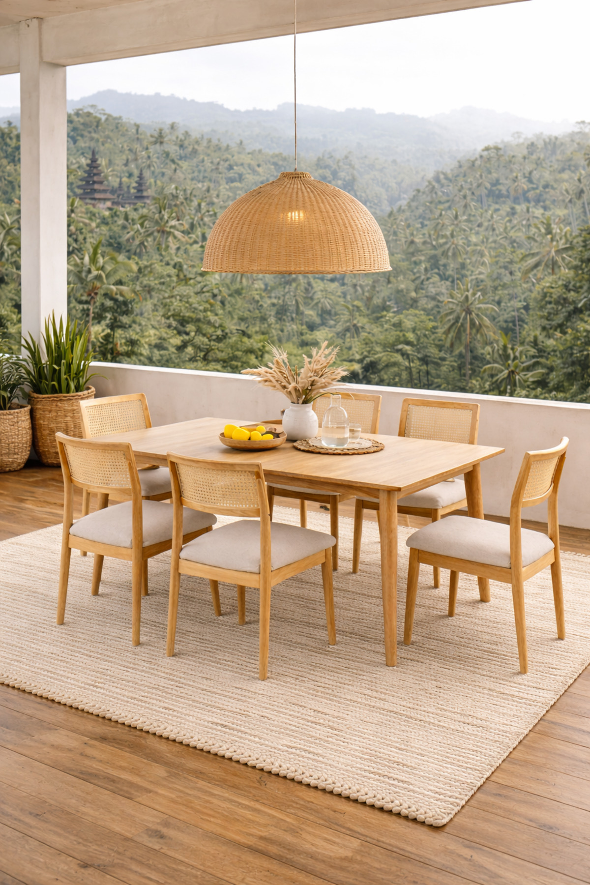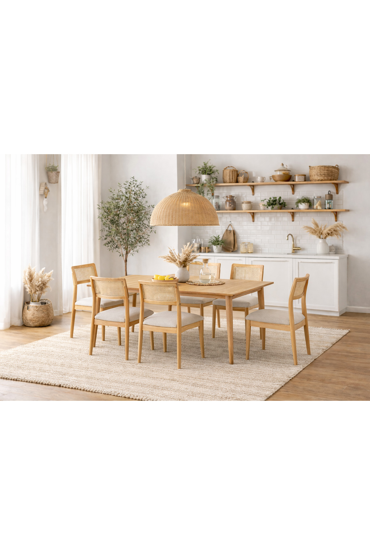 6 Kişilik Hasır Sandalye Yemek Takımı MDF Masa Ahşap Ayak