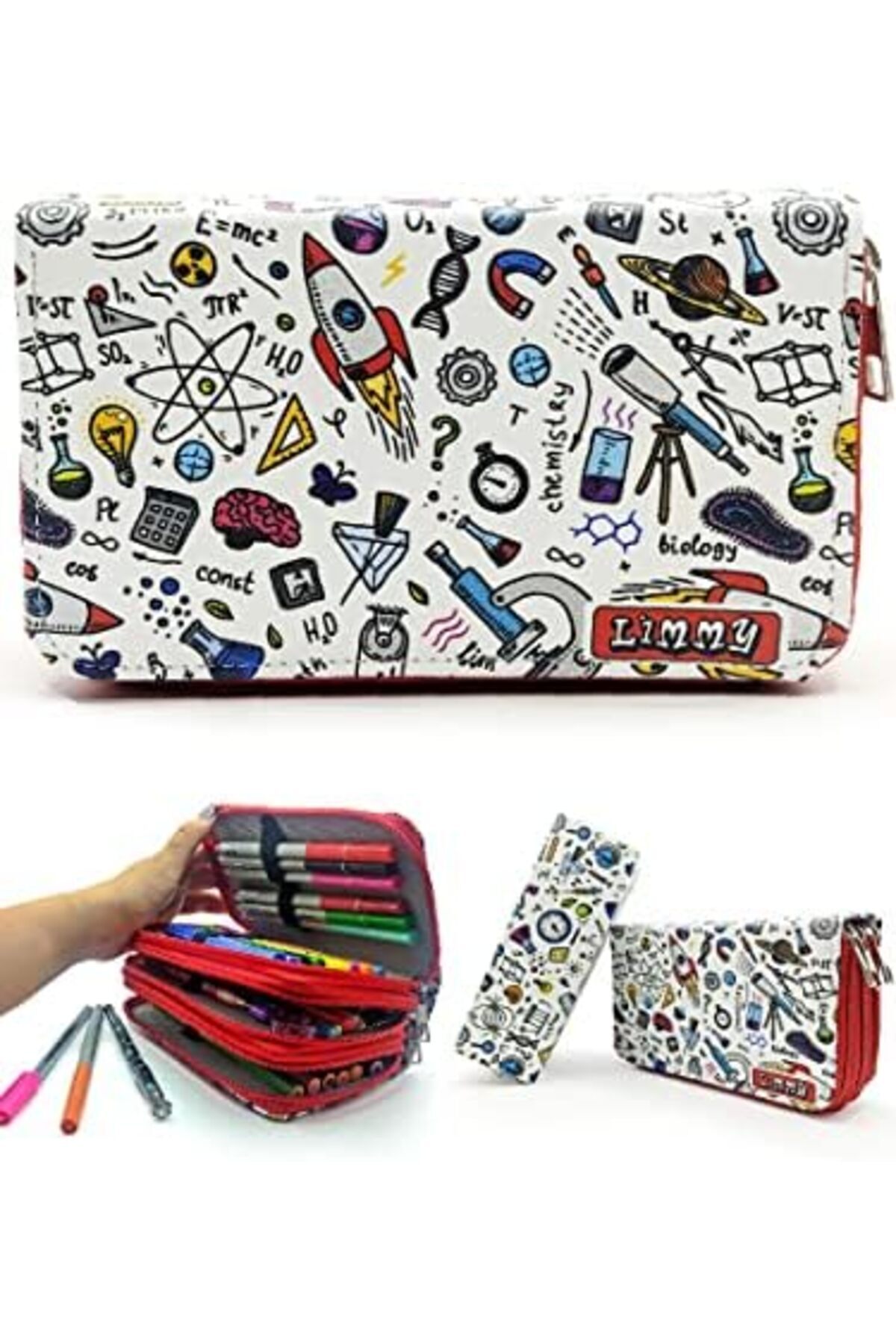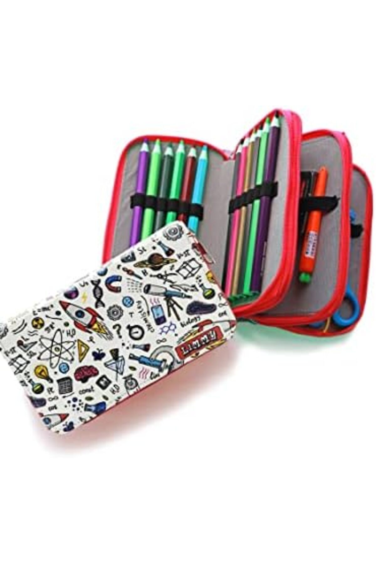 malzeme: Deri Kalem Kutusu Fen Bilimi Desenli Kawai Organizer Kalemkutu Vegan Deri Üç Bölmeli Kalemlik - Kırmızı Kalem Kutusu Fen Bilimi Desenli Kawai Organizer Kalemkutu Vegan Deri Üç Bölmeli Kalemlik - Kırmızı