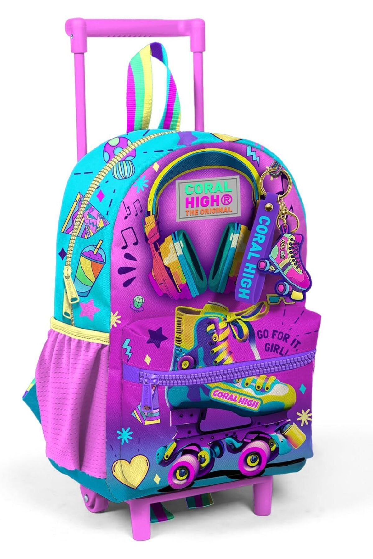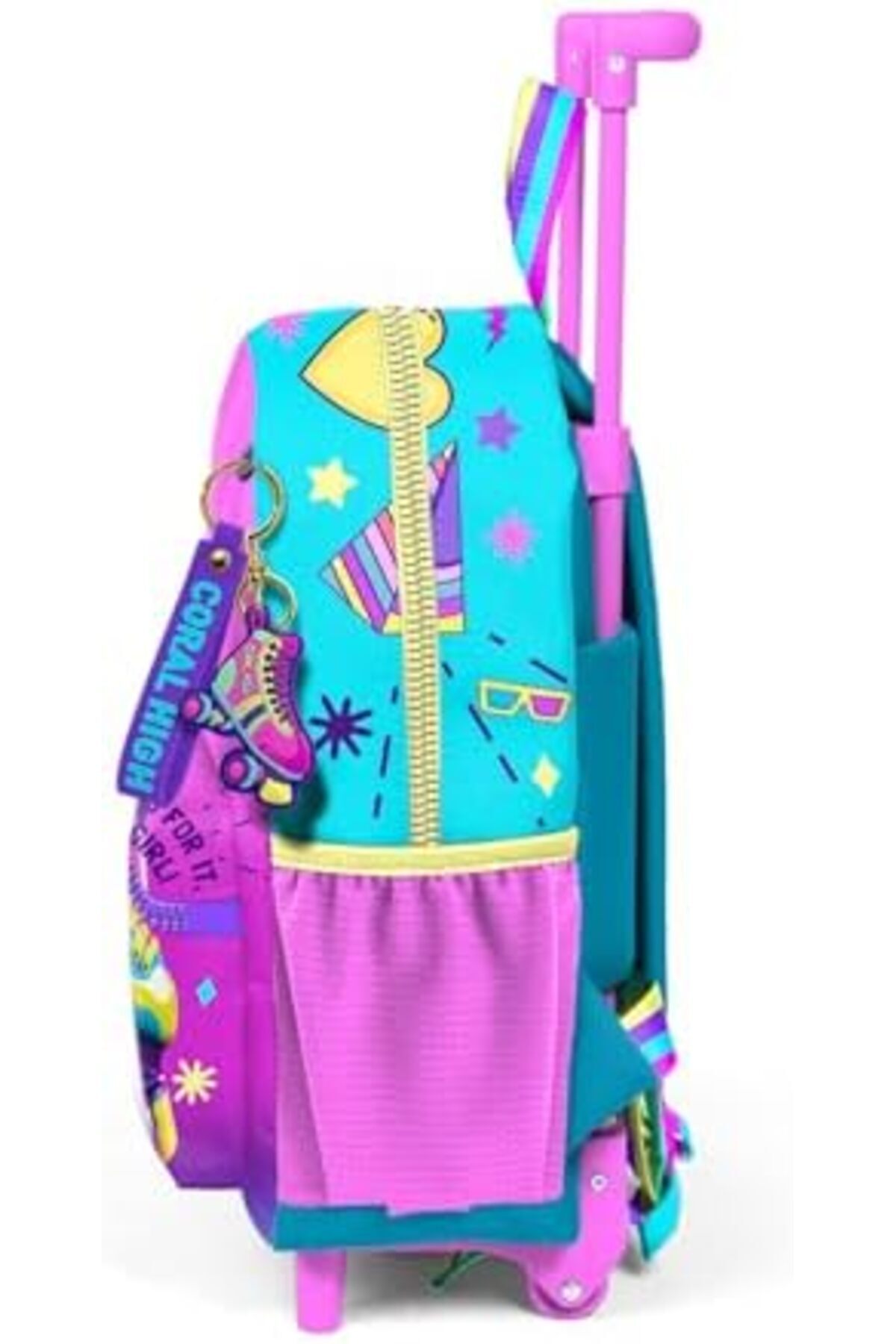 Güncel renk ve motif seçenekleri ile tasarlanmıştır Ürün sırt çantası olarak kullanılabilir özelliğe sahiptir Çantanın ana gözü daha sağlam ve güvenli olması için çift fermuar sürgüsüne sahiptir Yanlarda esnek malzemeden 2 adet Fileli aksesuar ve matara cebi vardır Çekçek tek kademelidir Anaokul Çekçek Çanta Anaokul Çekçek Çanta