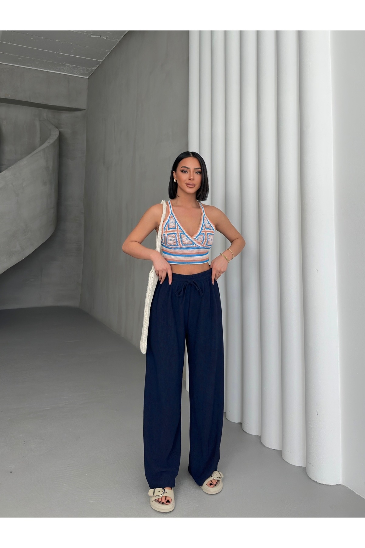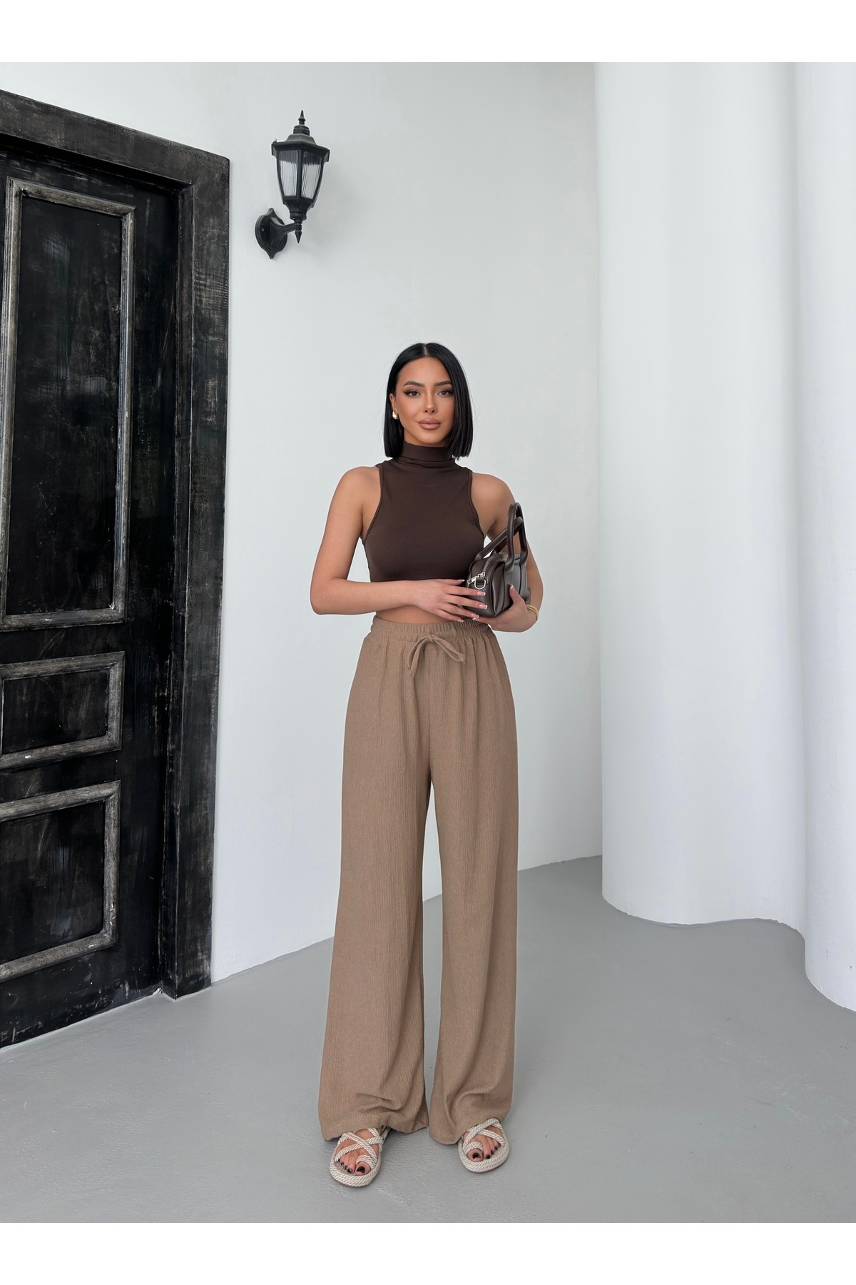 - Geniş paça tasarımı ile hareket özgürlüğü sunarken, düz deseniyle sade ve şık bir stil oluşturur.