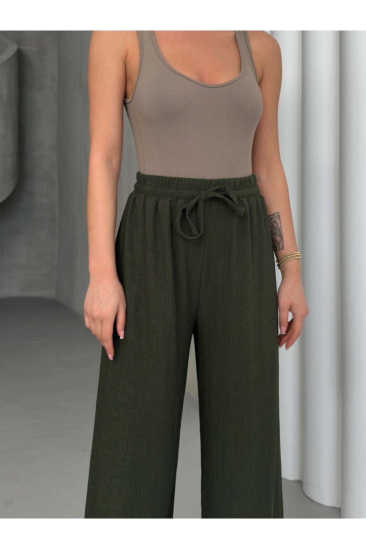 - Geniş paça tasarımı ile hareket özgürlüğü sunarken, düz deseniyle sade ve şık bir stil oluşturur.