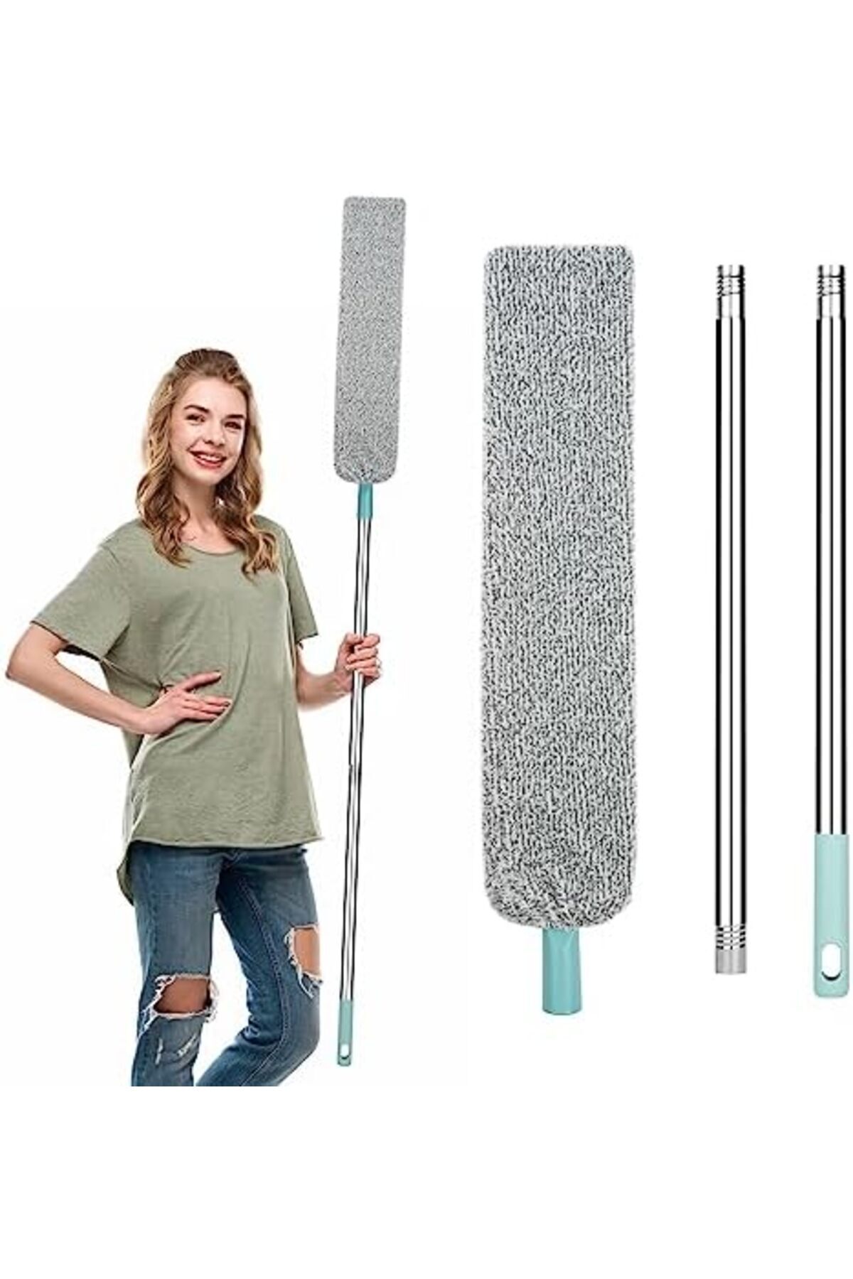 【Toz Fırçası】: Temizleme kiti silgimiz 1* yükseltilmiş alüminyum çubuk, 1* esnek panel, 1* mikrofiber kapağa sahiptir.