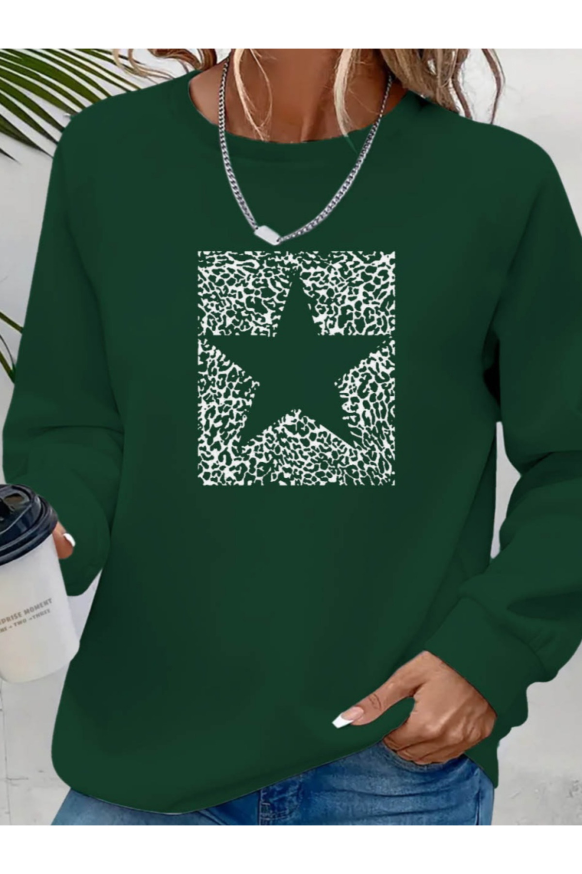Kadın Uzun Kollu Bisiklet Yaka Desenli Viskon Iki Iplik Bluz