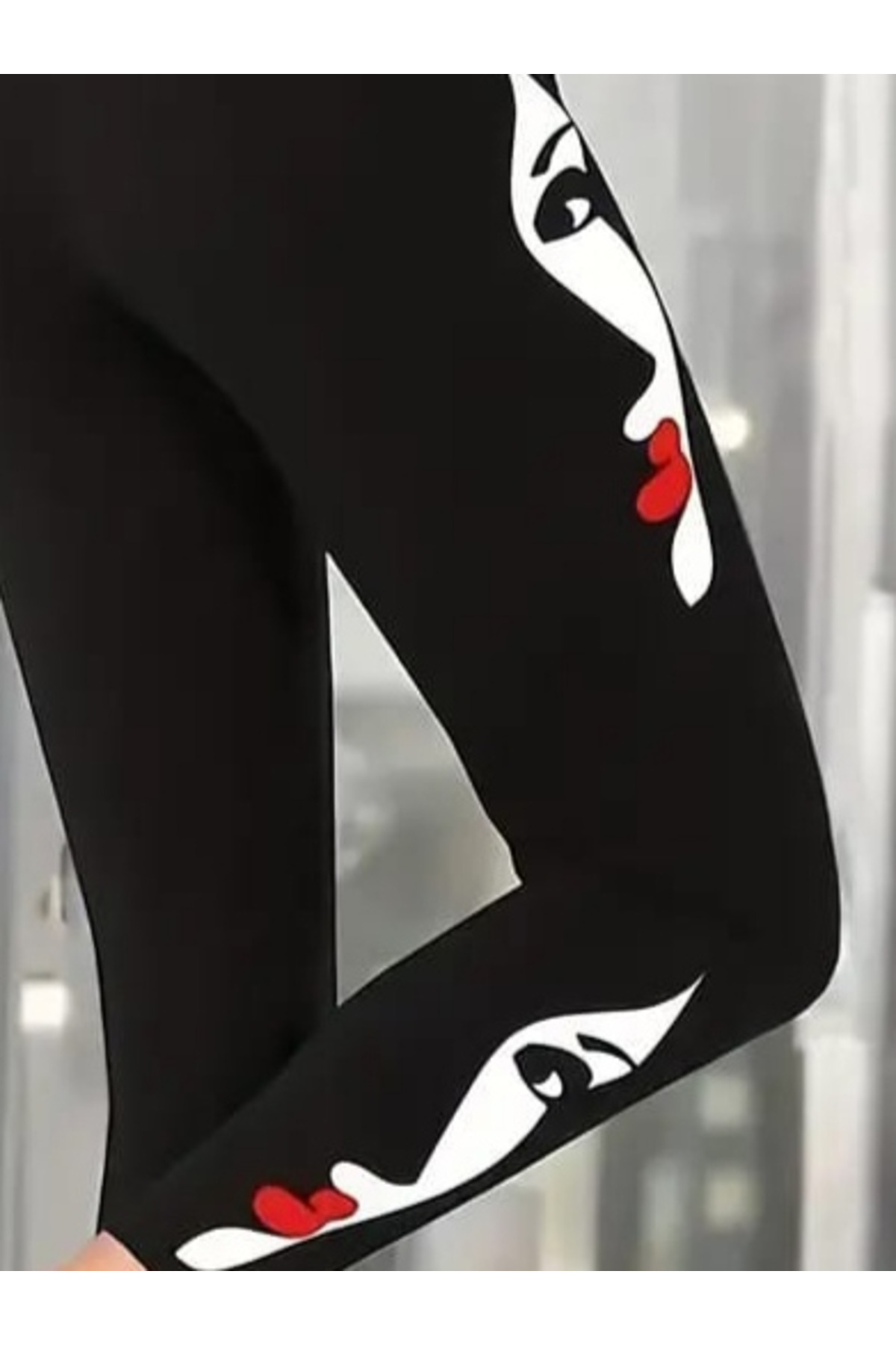 Kadın Yüz Baskılı Dalgıç Kumaş Tayt