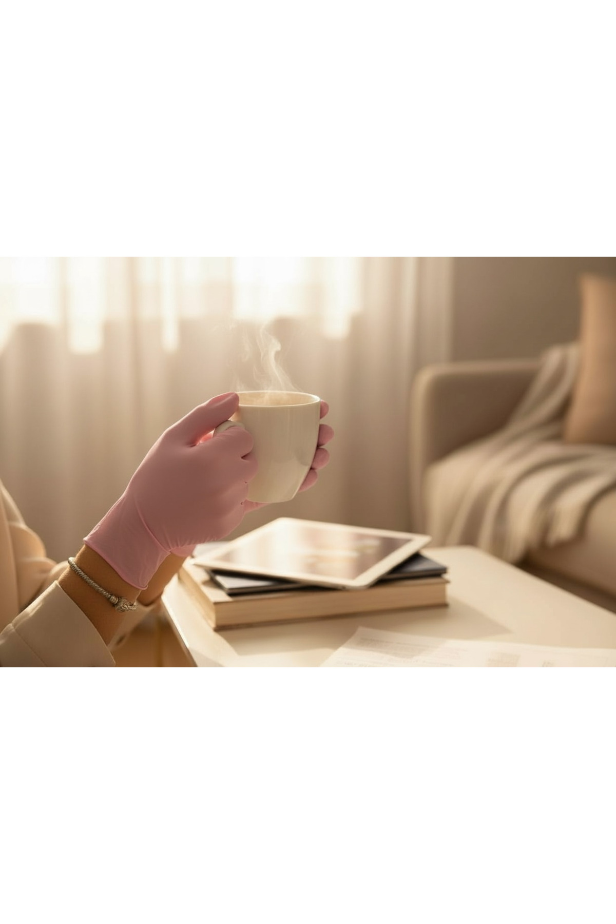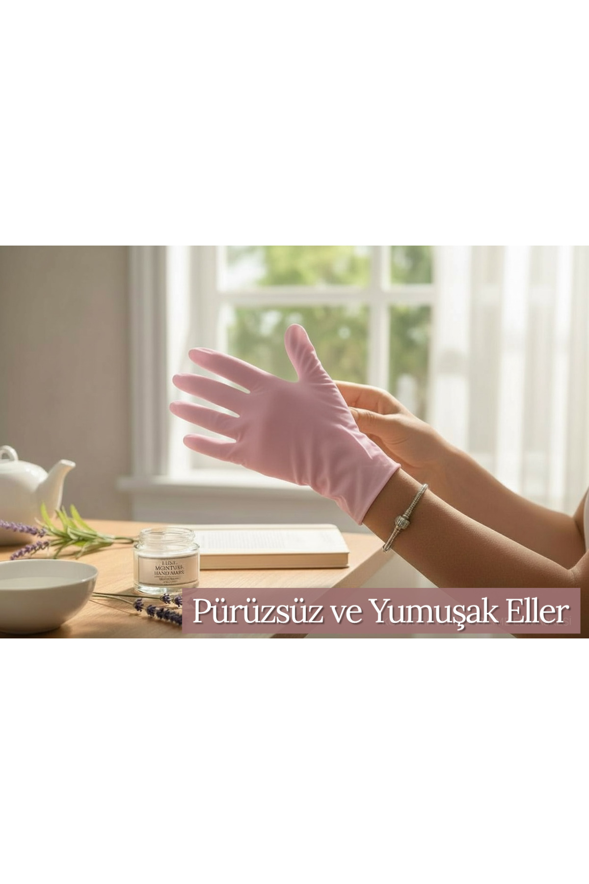 Krem uygulaması sonrası kullanılan maske eldiven, nemin ciltte hapsedilmesine yardımcı olarak daha yumuşak ve bakımlı bir his sağlar.