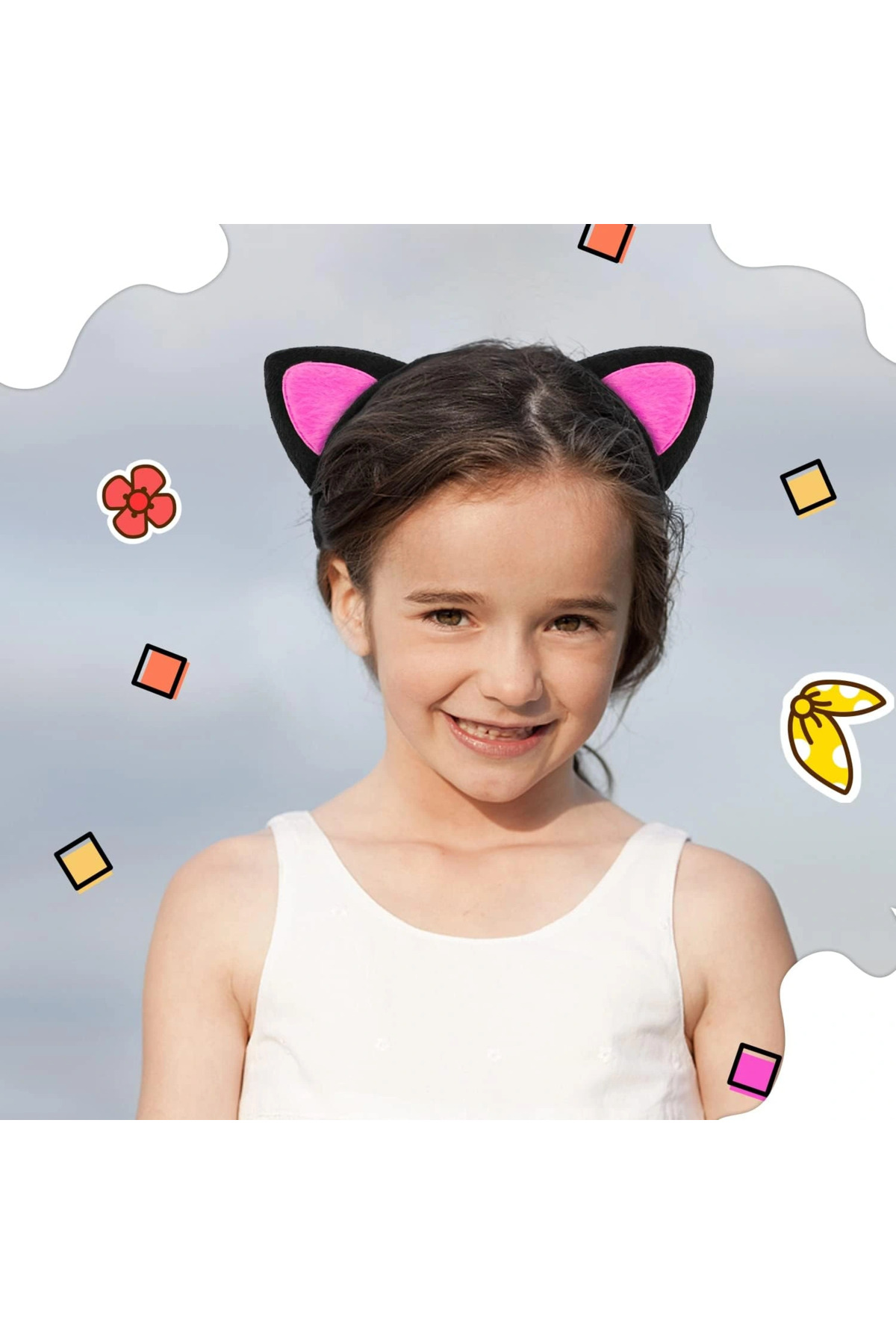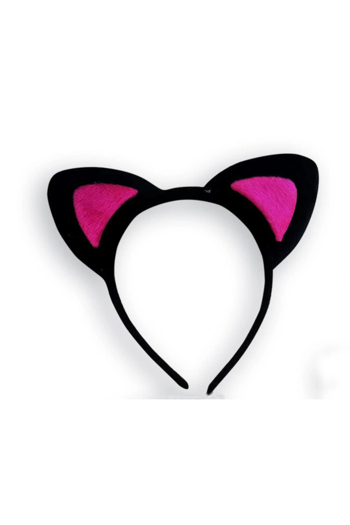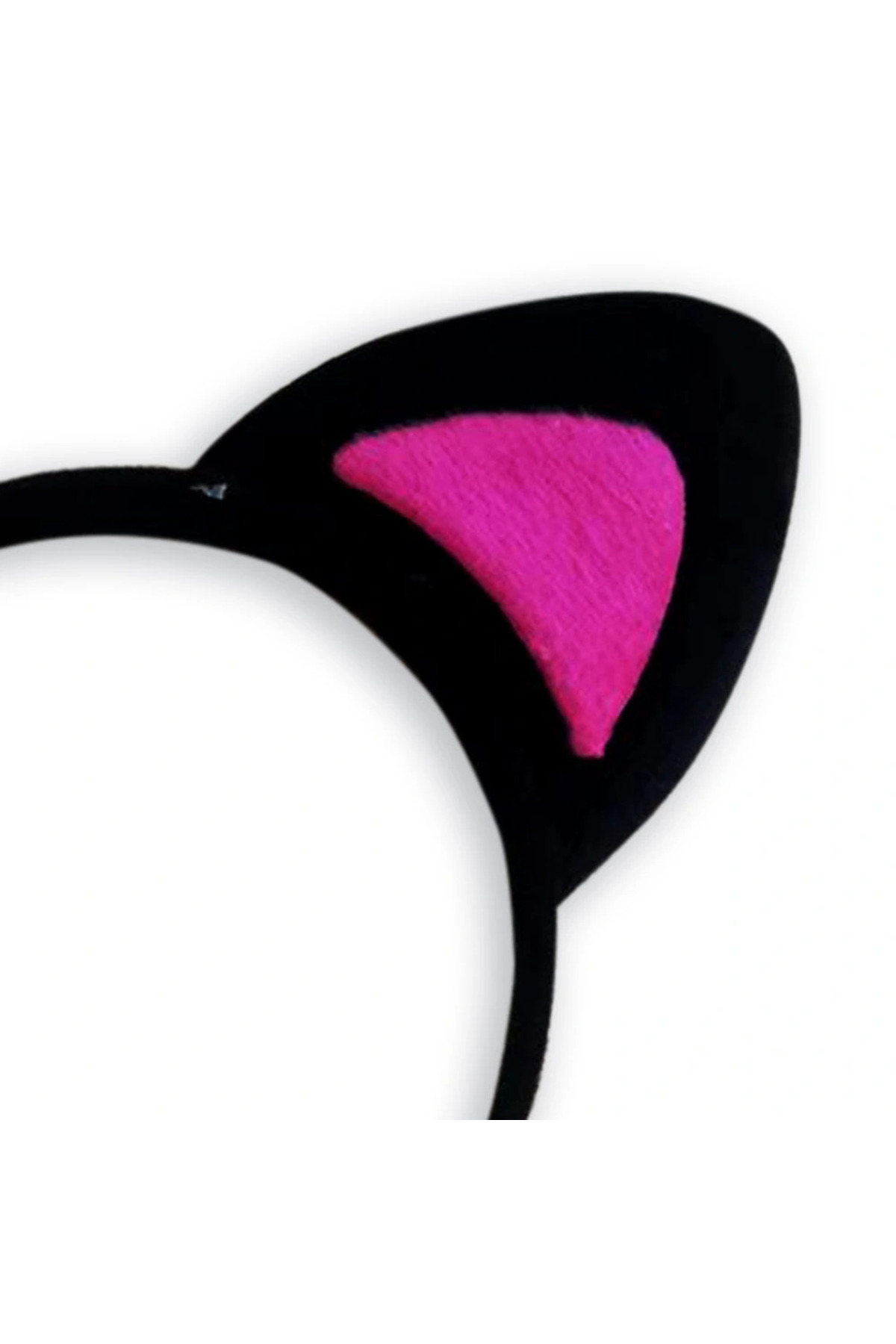 Sevimli Kedi Kulak Pofuduk Kedi Taç Siyah İçi Şeker Fuşya Renk 17x15 cm