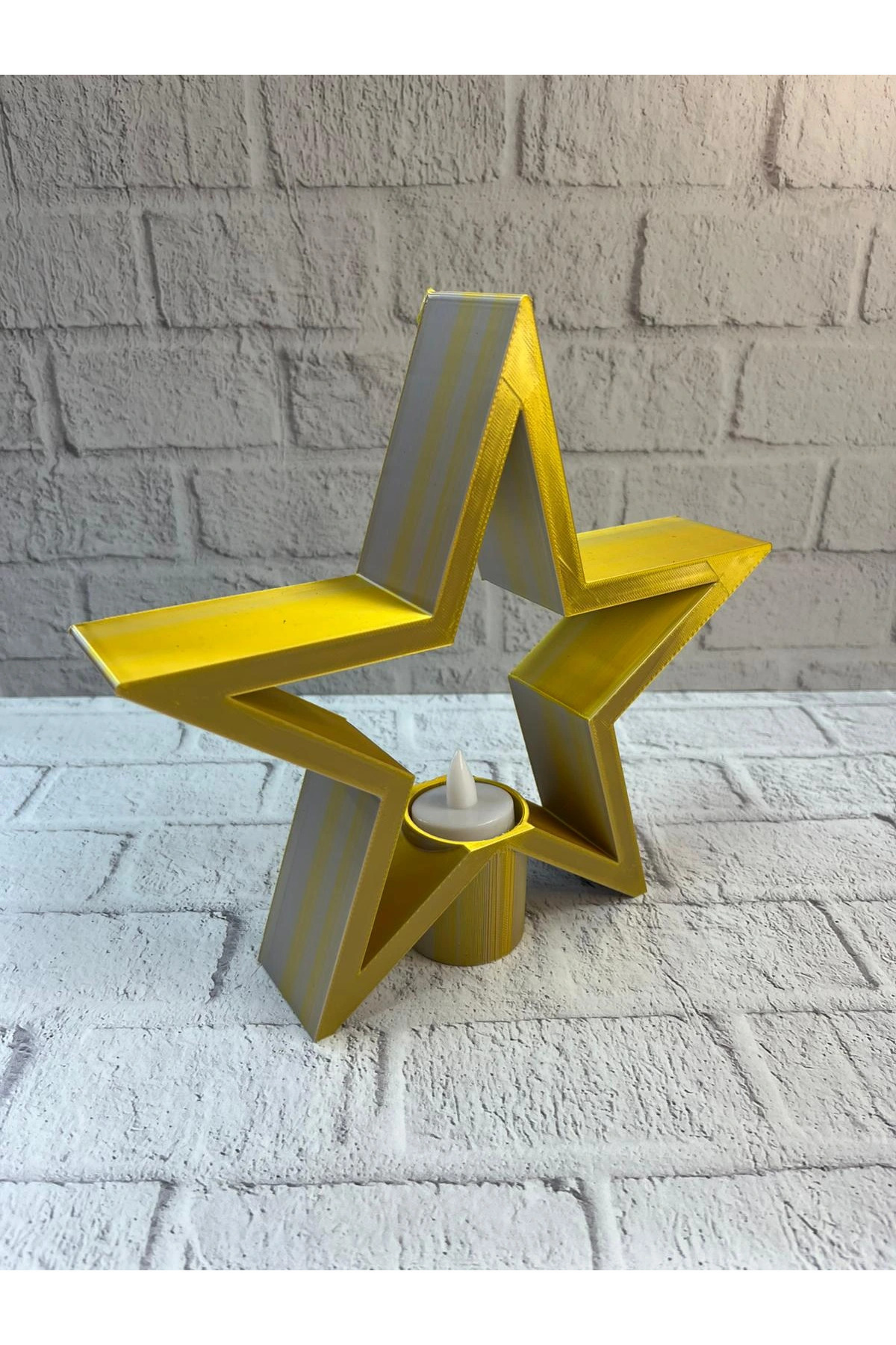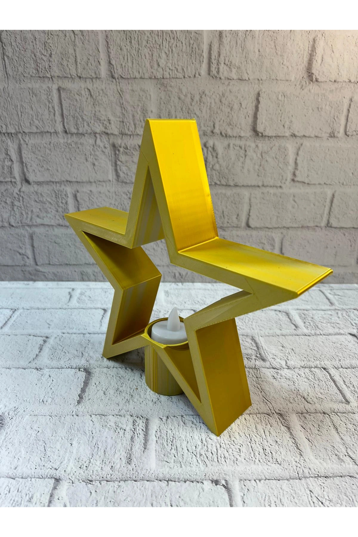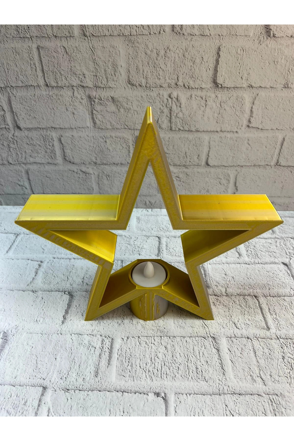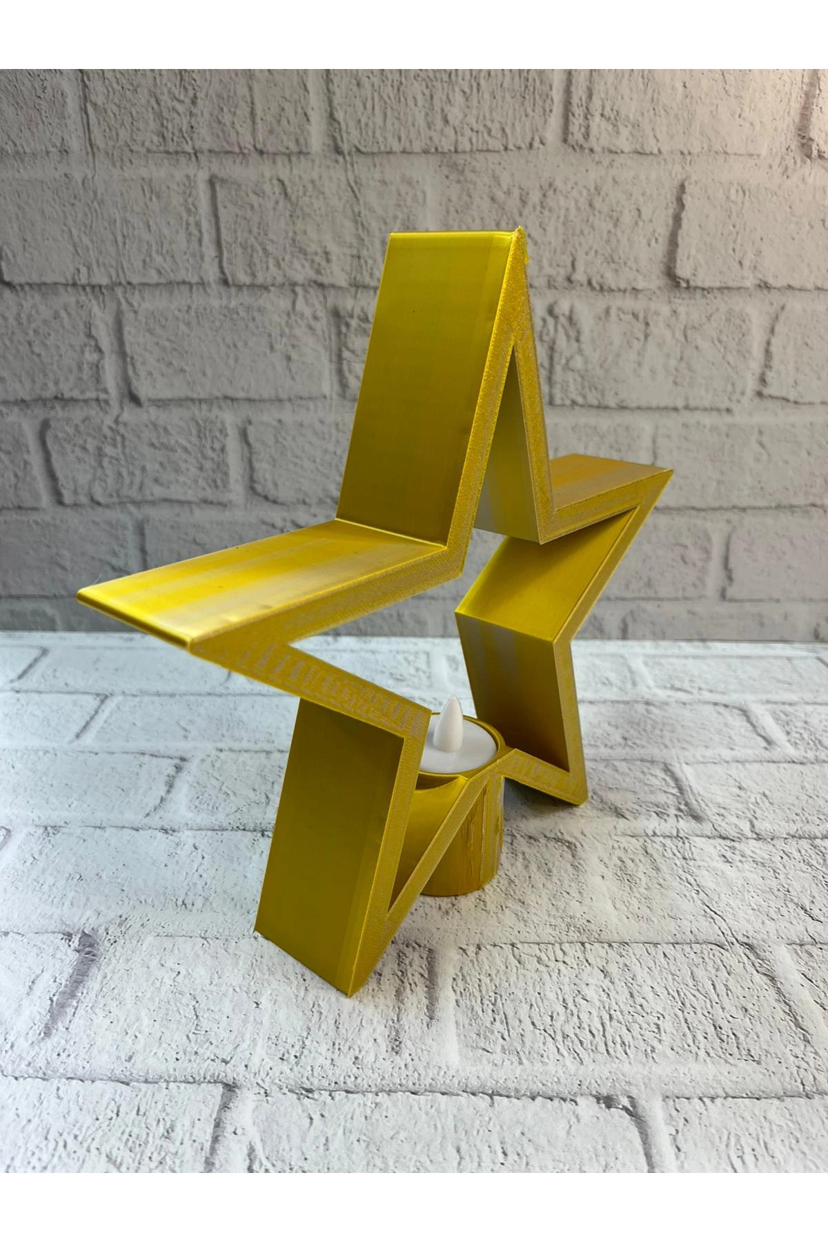 Dekoratif sarı yıldız mumluk, sıcak tonuyla yaşam alanlarına canlılık kazandırır.