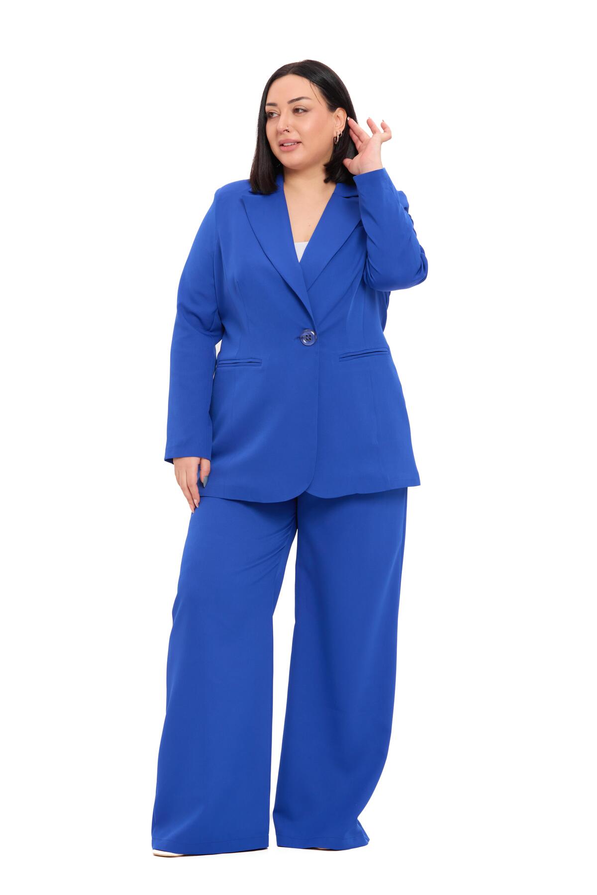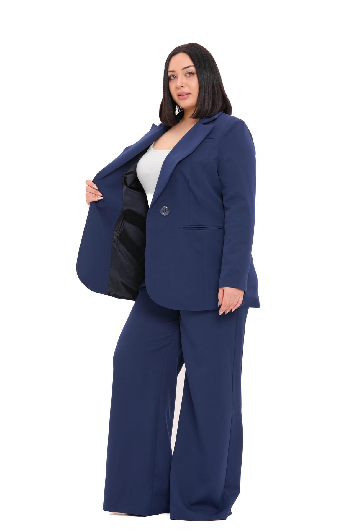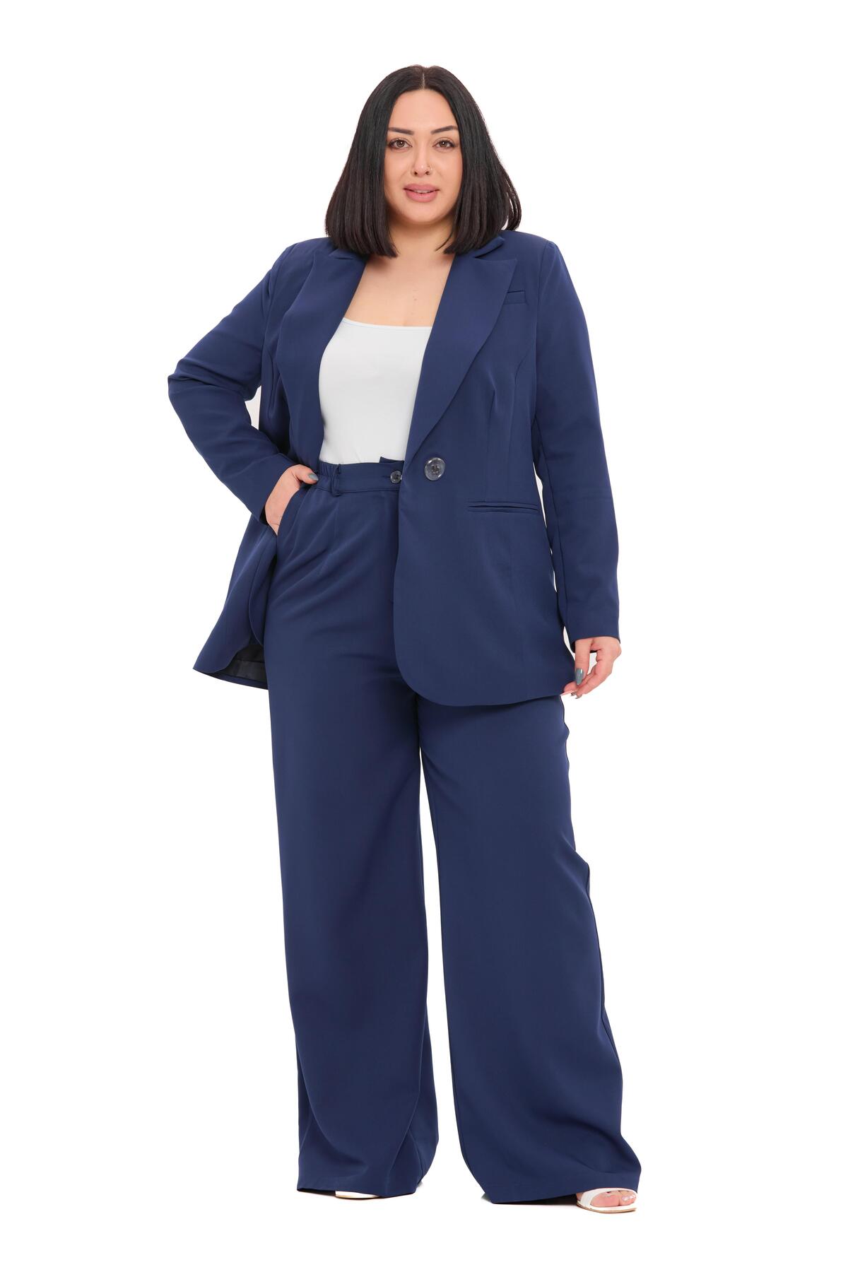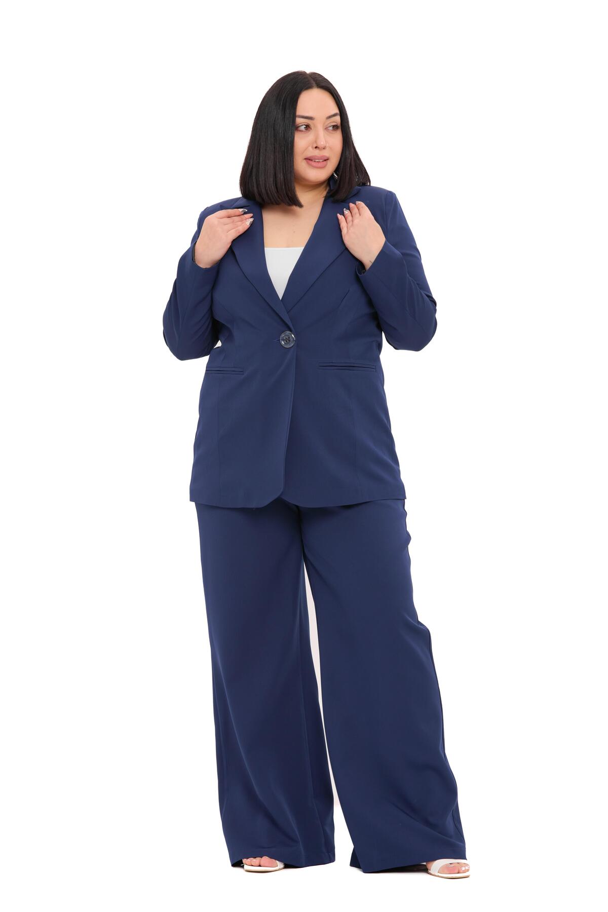 Büyük Beden Tek Düğmeli Lacivert Ceket Pantolon İkili Takım