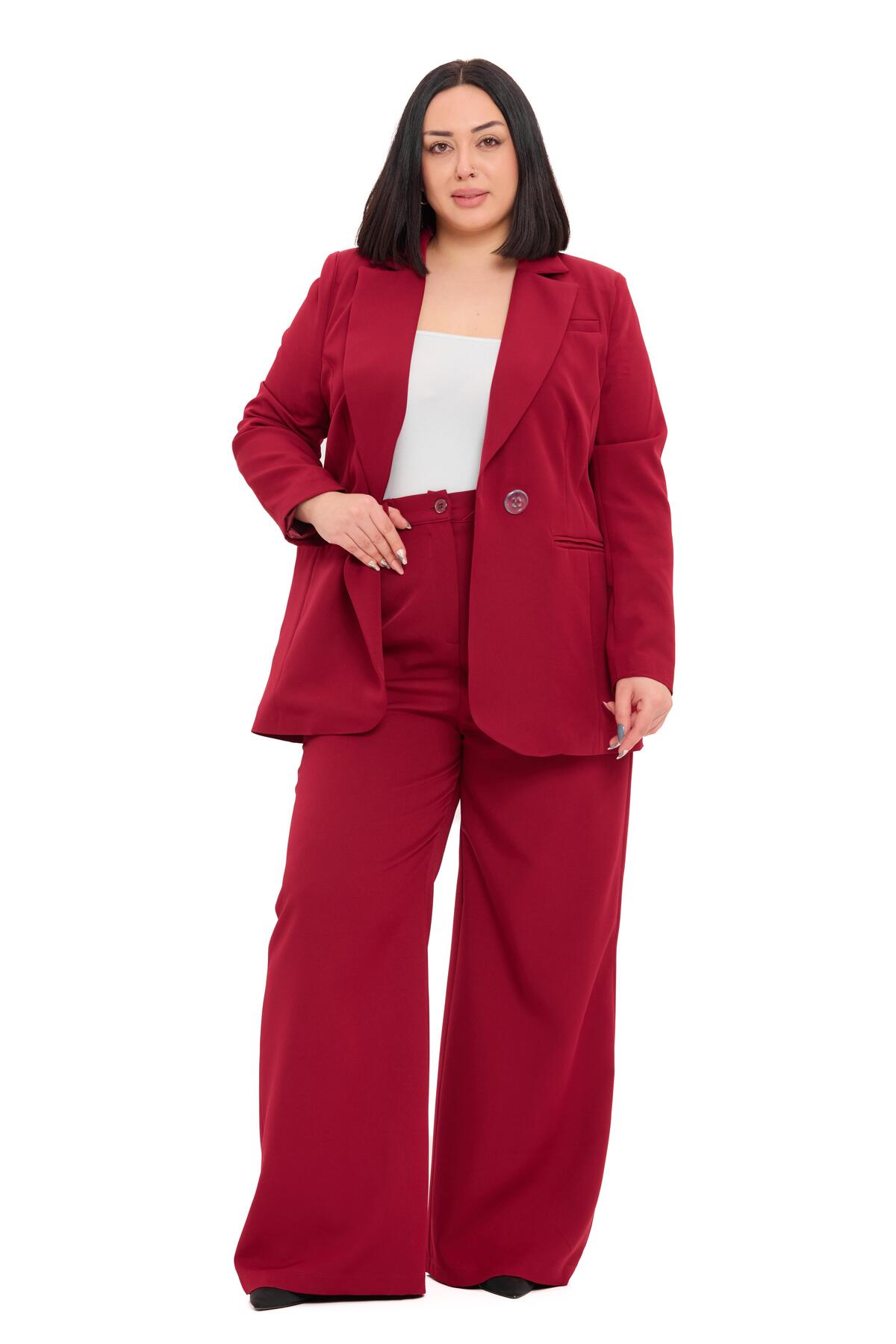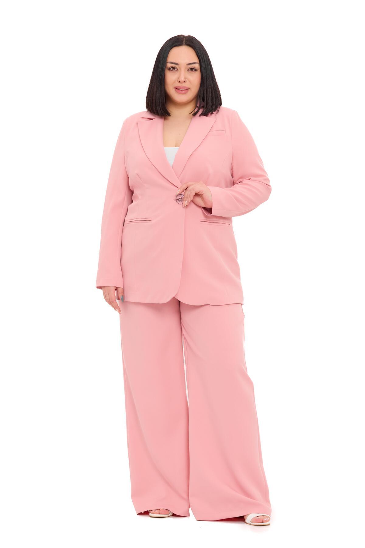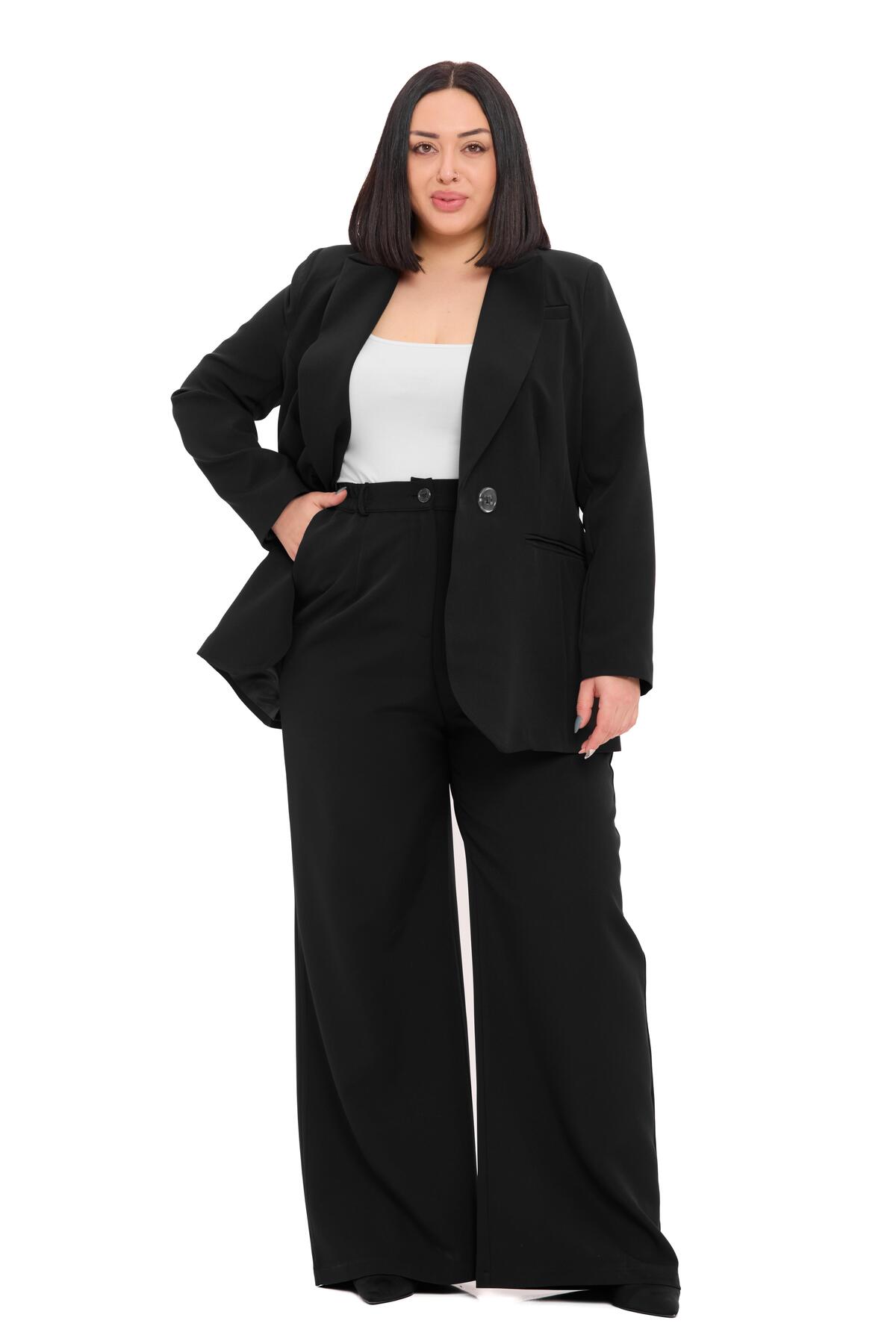 Büyük Beden Tek Düğmeli Lacivert Ceket Pantolon İkili Takım