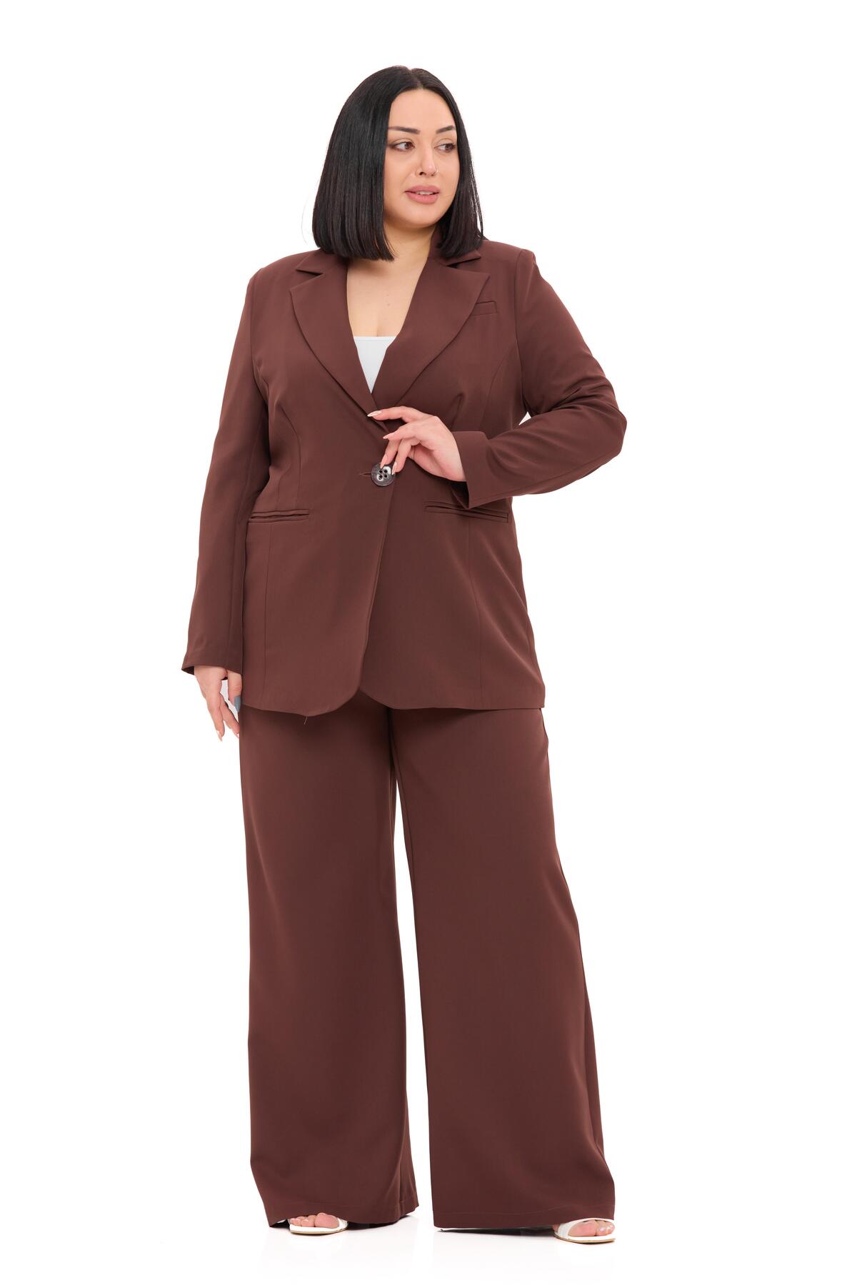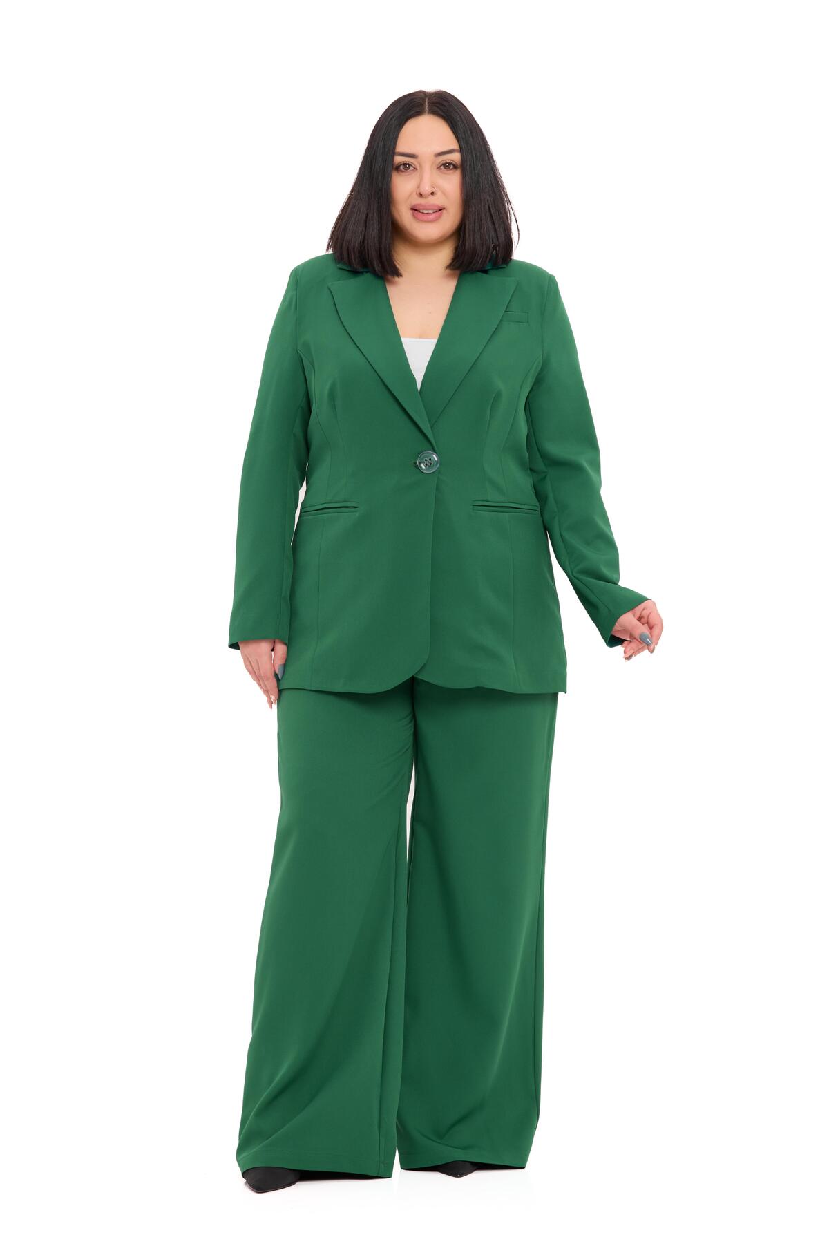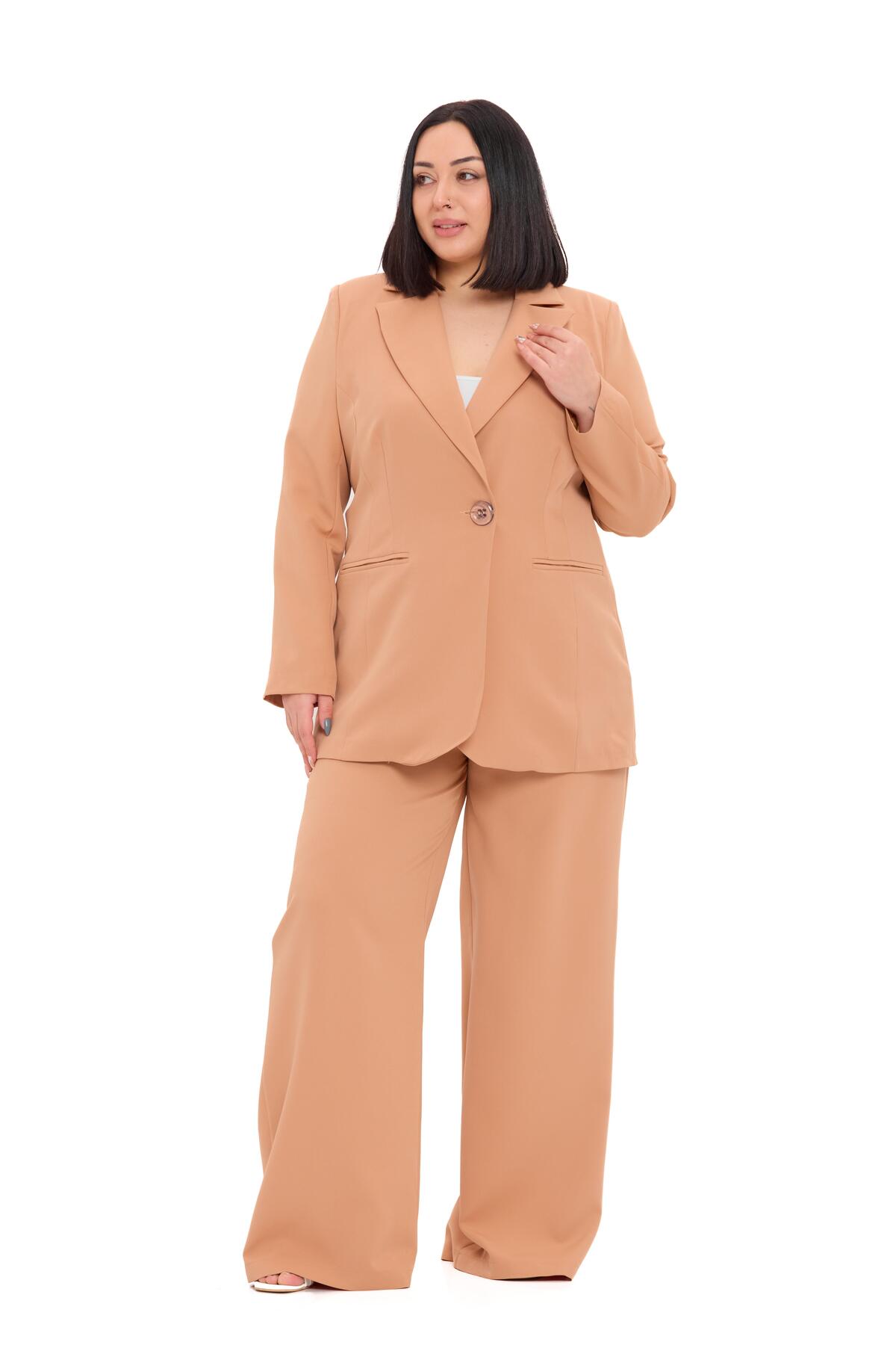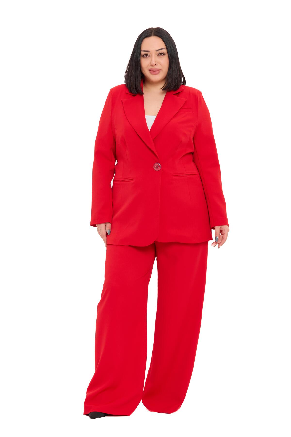 Büyük Beden Tek Düğmeli Lacivert Ceket Pantolon İkili Takım
