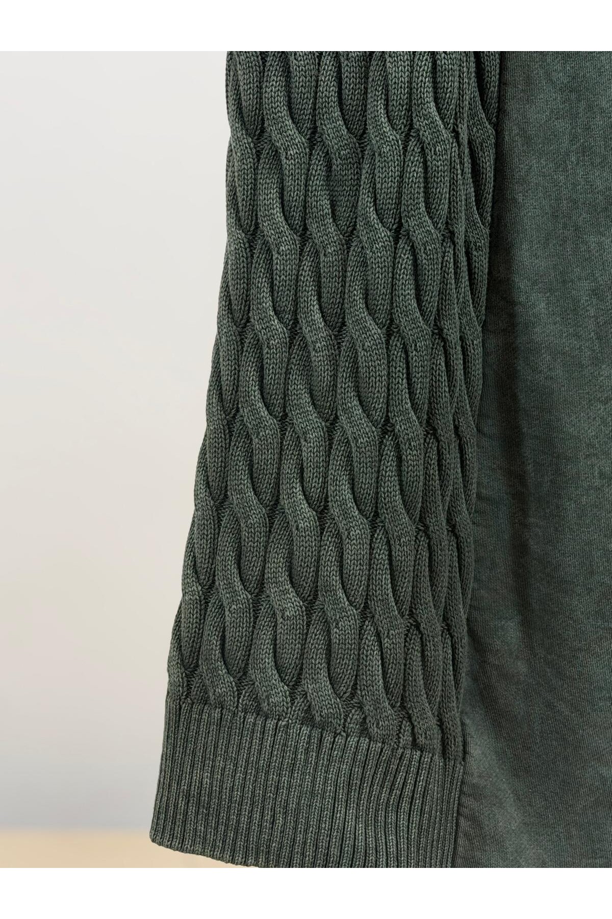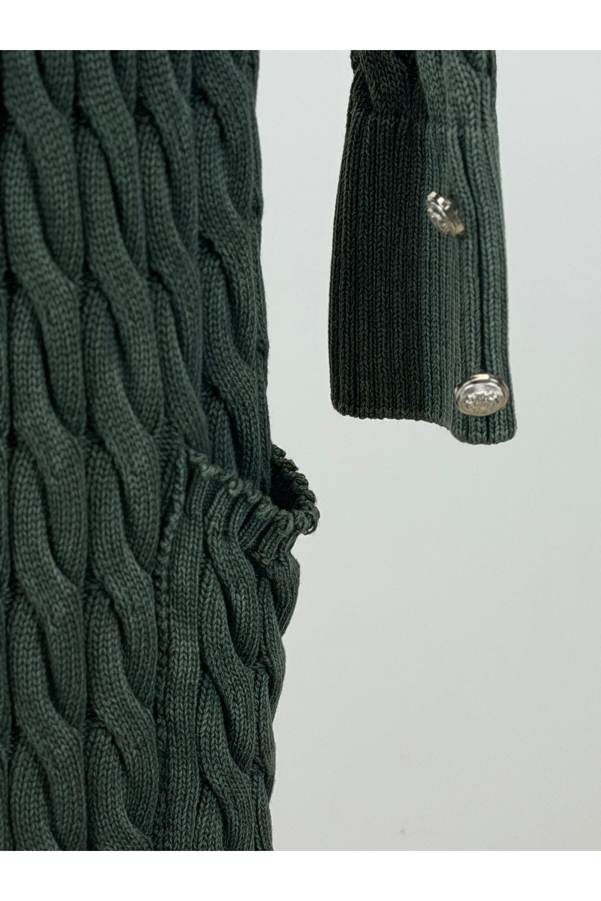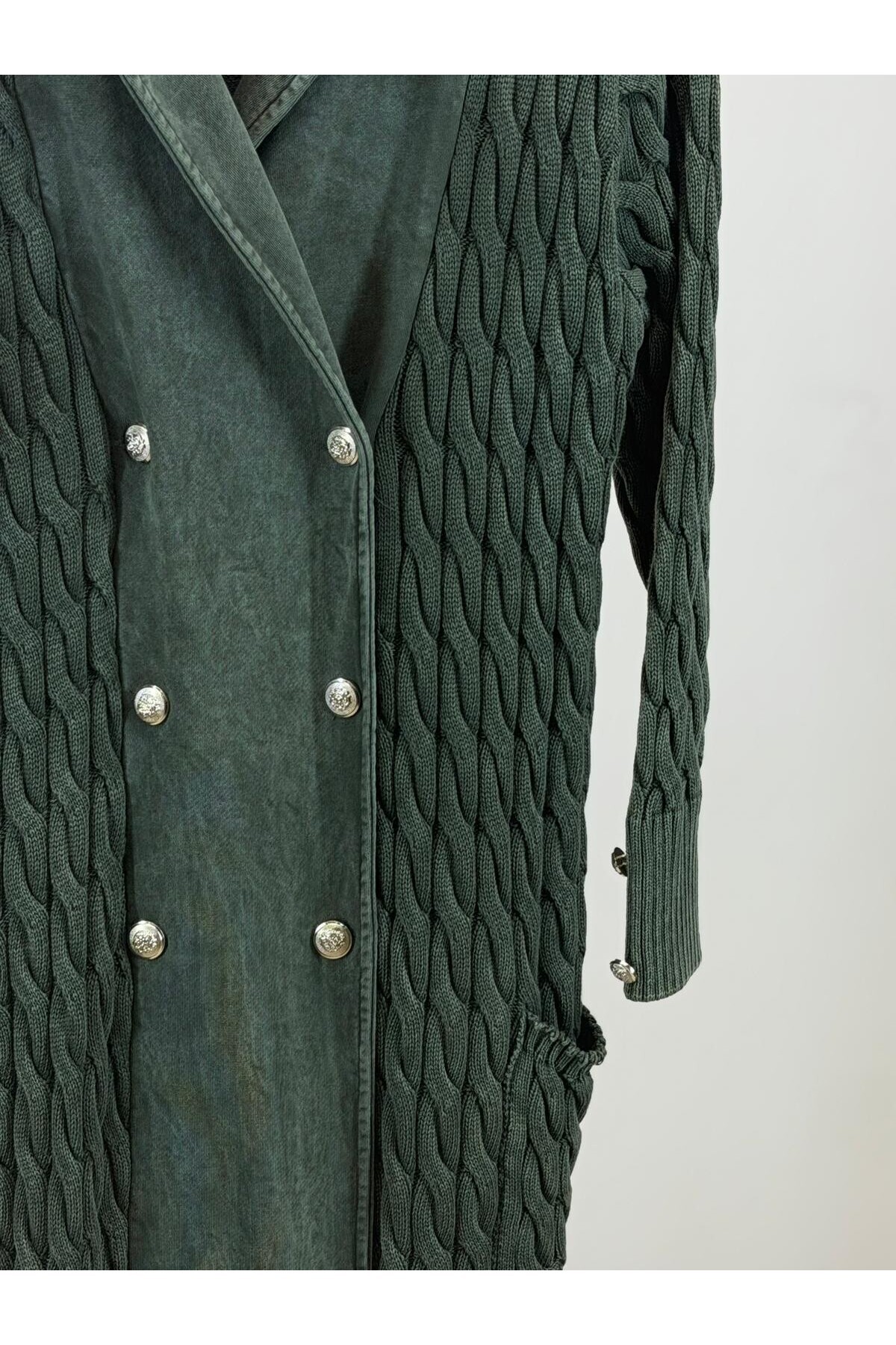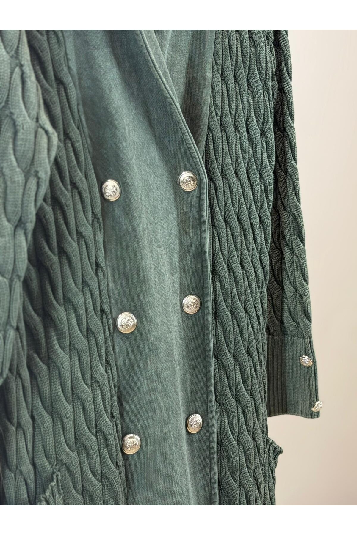 ÖRGÜ DETAYLI DÜĞMELİ UZUN TRİKO CEKET