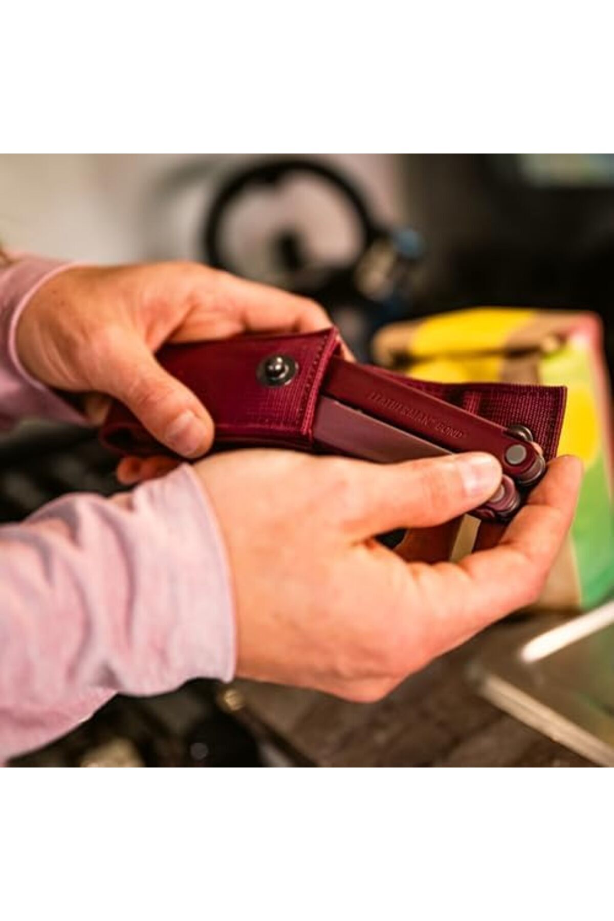 , 14 temel işlevi bir arada bulunduran kompakt tasarımlı çok amaçlı alet Cep klipsi takma özelliği: Araca cep klipsi takılabilir (cep klipsi ayrı satılır) Askı halkası: Bu halka, aracı bir kayışa bağlamanızı sağlar Kılıf kutu içeriğinde bulunmaktadır Sadece 176 gram Çok Amaçlı Heathered Cranberry Çok Amaçlı Heathered Cranberry