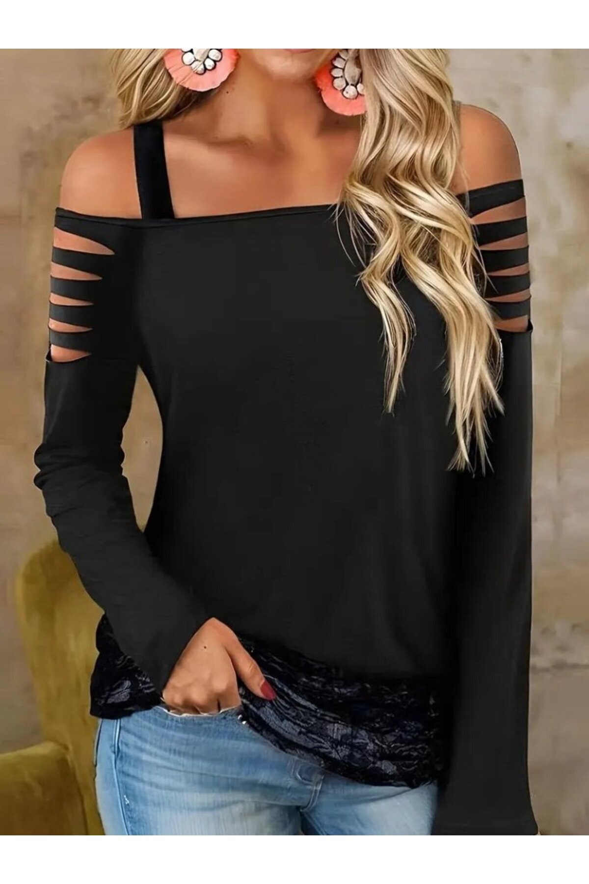 Kadın Uzun Lazer Kesik Detaylı Askılı Viskon Iki Iplik Bluz