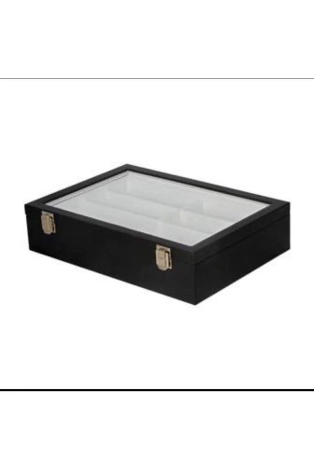 Gözlük Kutusu 8 bölmeli Mdf Üzeri Deri Kaplama Camlı Kapaklı