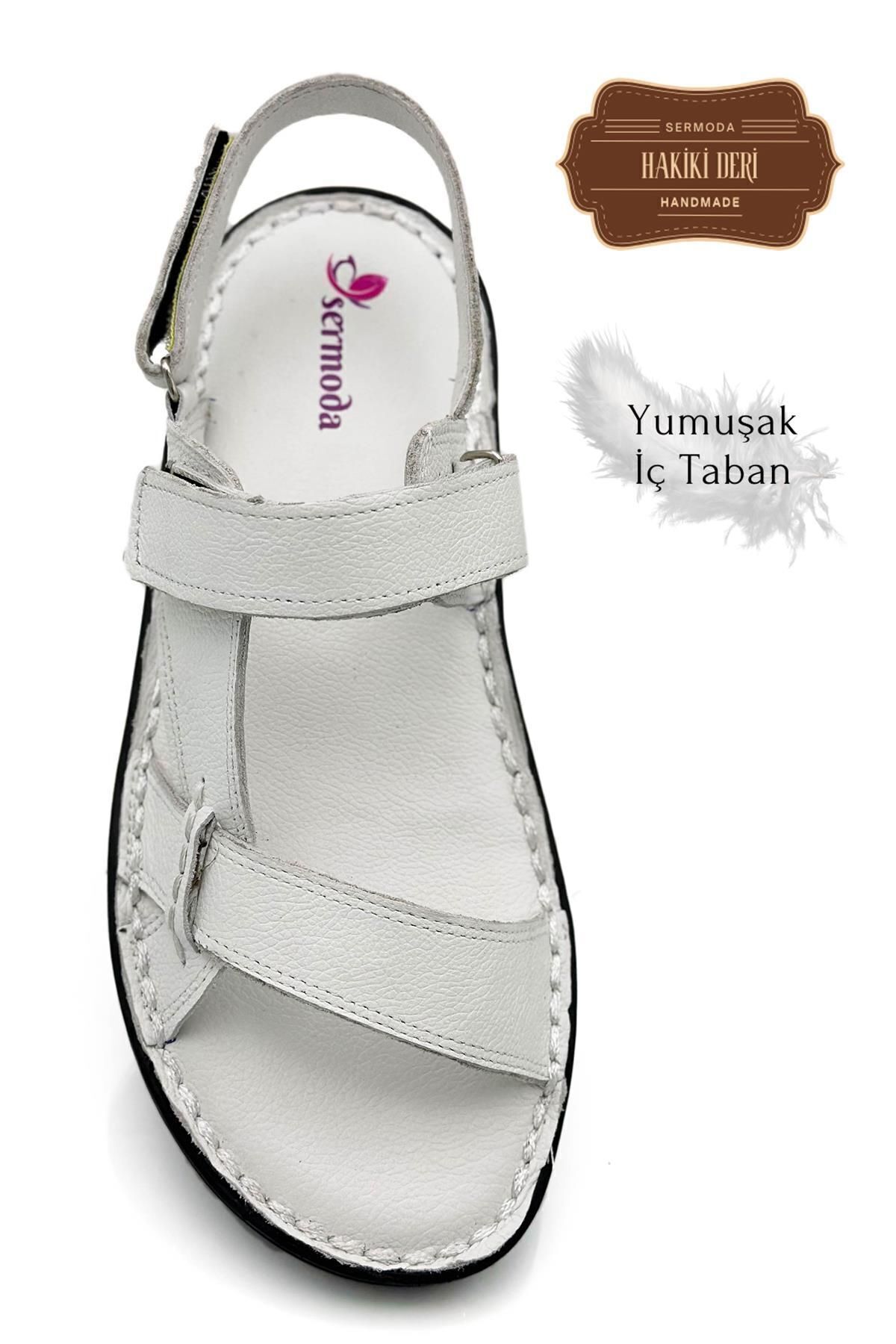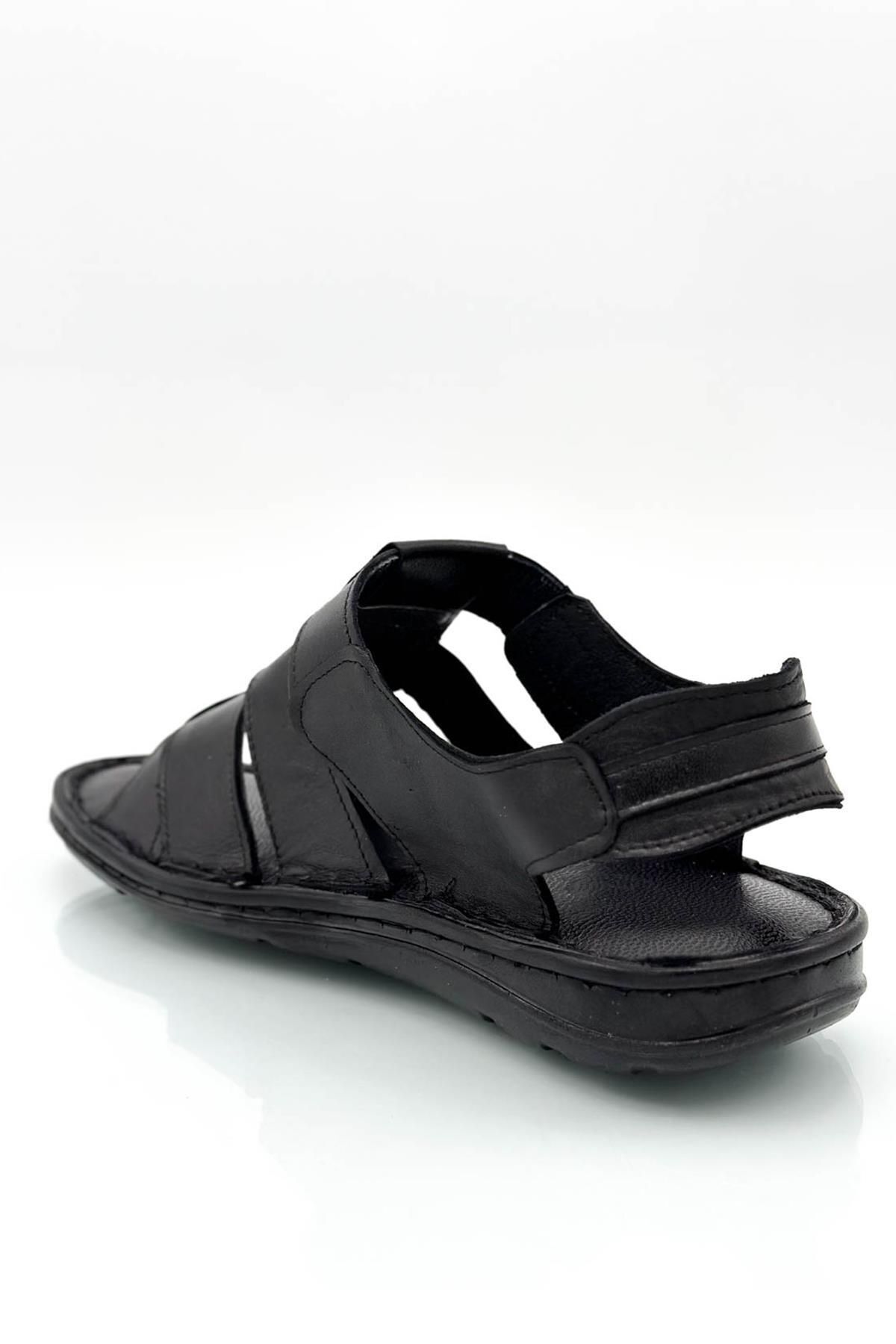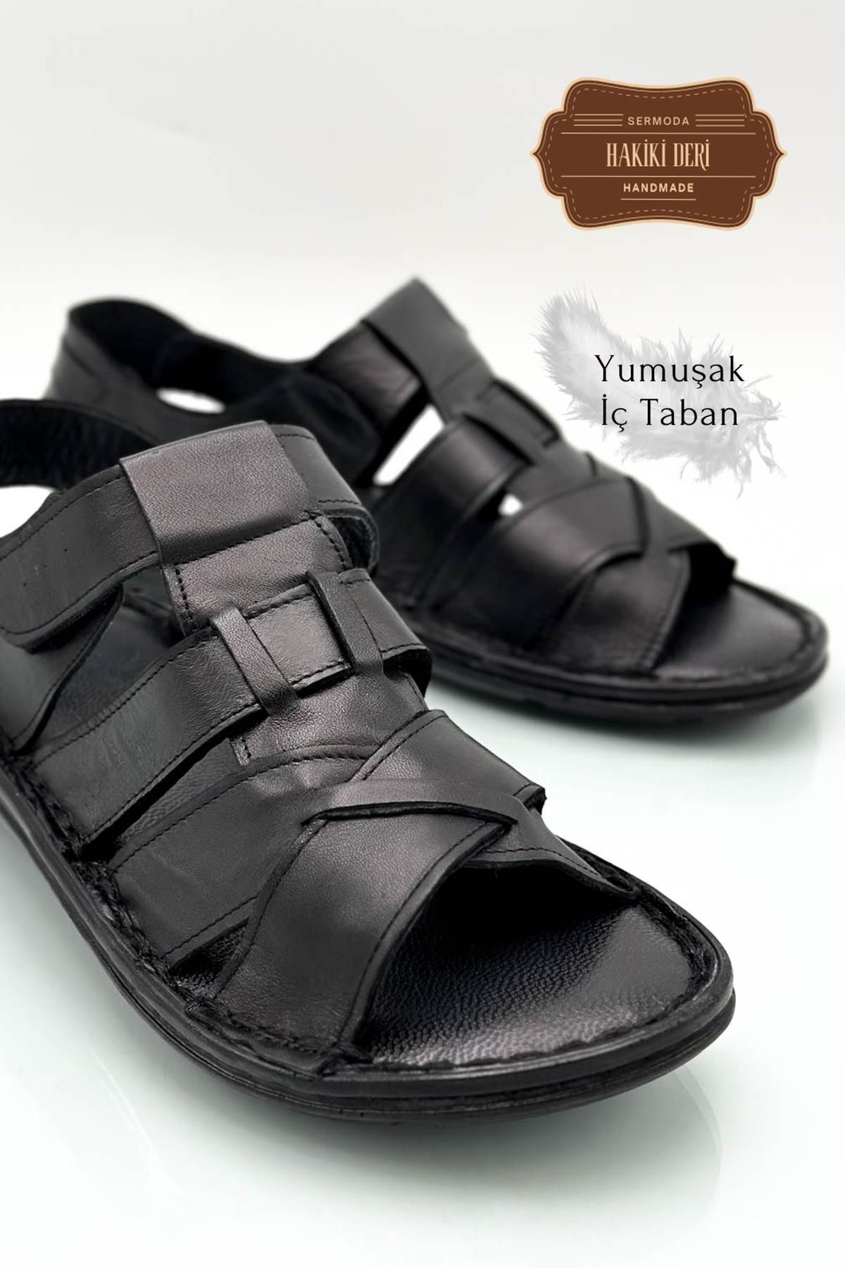 Hakiki Gerçek Deri Cırtlı Erkek Sandalet Çapraz Siyah