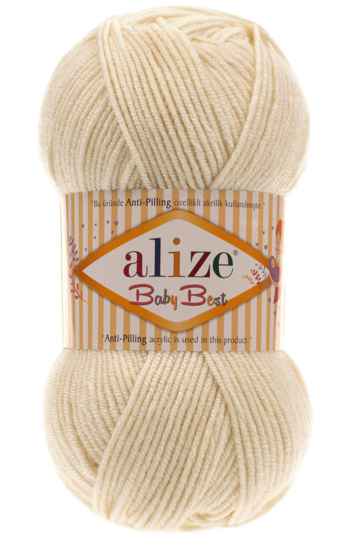 Ekranda gözüken renkler ile gerçek iplik rengi farklılık gösterebilir. İlgili markanın internet sitesinden renk kontrolü yaparak sipariş veriniz.Alize Baby Best El Örgü İpi, her amaca uygun klasik bir iptir. Bol renk çeşidi ile ön plana çıkmaktadır. Sonbahar-Kış koleksiyonuna ait bir üründür. Kazak, yelek, süveter ve daha birçok örgüde kullanıma uygundur. % 90 Akrilik, % 10 Bambu ‘ dan üretilmiştir. 100 gram ağırlığında, 240 metre uzunluğundadır. Üretici firma tarafından 4-5 numara şiş ve ya 2-4 numara tığ ile örülmesi tavsiye edilmektedir. Bu üründe anti-pilling özellikli akrilik kullanılmıştır. Ekranda gözüken renkler görseli incelediğiniz cihazınızın özellikleri ve bulunduğunuz ortamın ışık yansımasına göre gerçek iplik rengi ile farklılık gösterebilir. Farklı üretim serilerine ait ürünler arasında renk farkı oluşabilmektedir. Bu ürünü örgünüzde ihtiyaç olan miktarı hesaplayarak, gerekirse 1 adet fazla temin etmeniz tavsiye edilir. Alize Baby Best El Örgü İpi ile ördüğünüz örgülerinizi elde yıkamanız önerilir. Çamaşır makinasında 30 derecede yıkayınız. Mümkünse sererek kurutunuz. Düşük ısı ile ütü yapılabilir. Örgülerinizi daha uzun süreli kullanmak için yıkama talimatına uymanız tavsiye edilir.