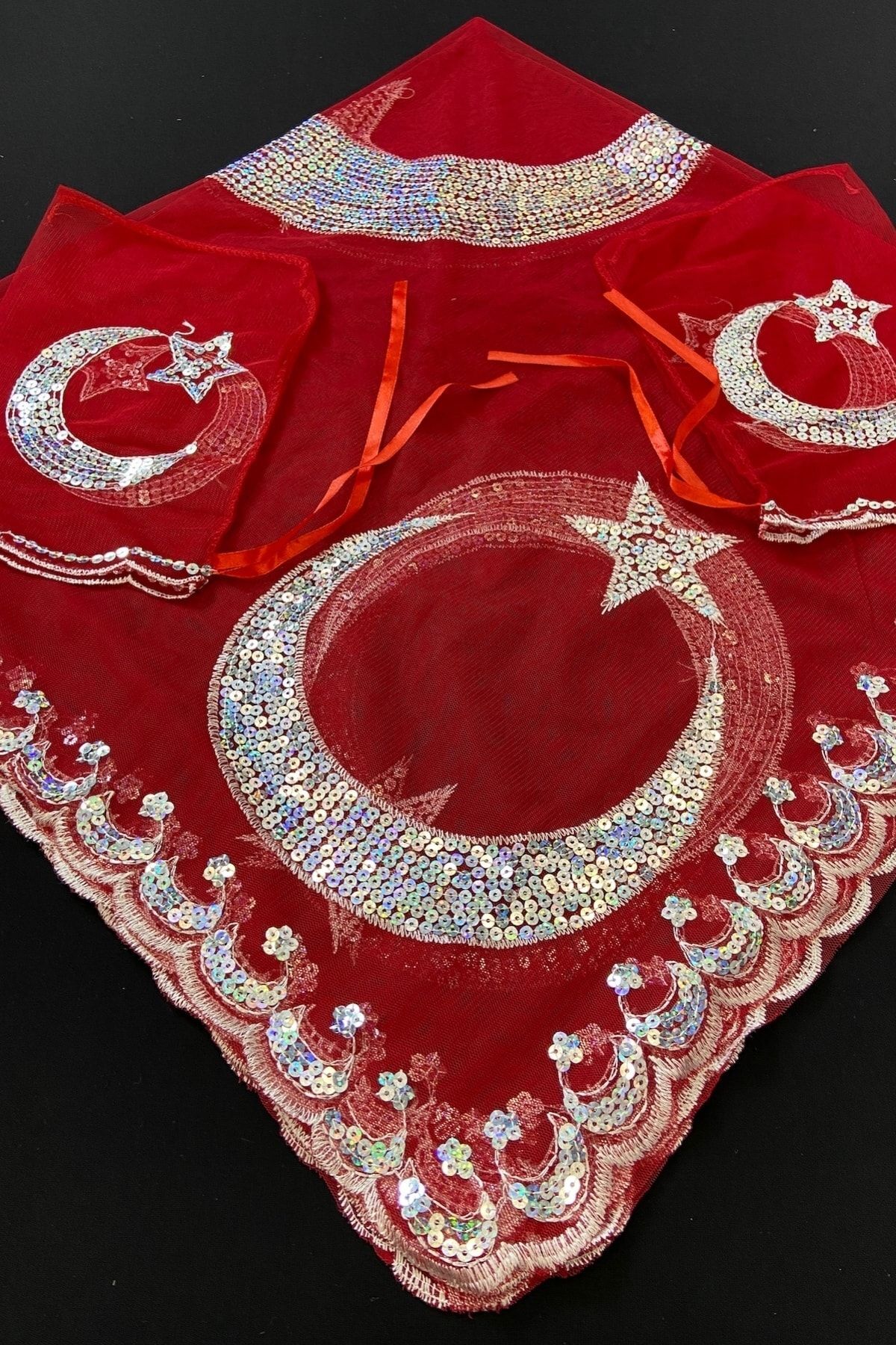 Yeşil Ayyıldız Motifli Damat, Sağdıç, Asker Omuz Örtüsü, Kına Şalı