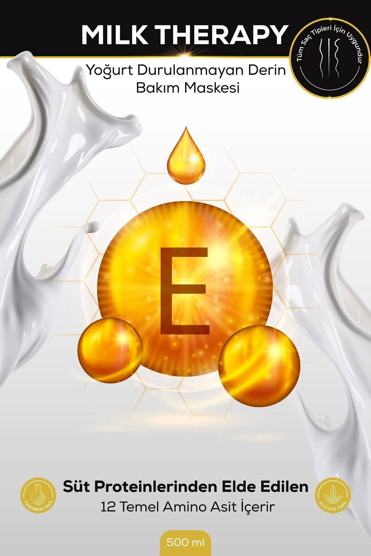 Milk therapy yogurt mask, özel bileşiminden elde edilen aminoasit oligomerleriyle saça doğal görünümünü geri kazandıran yoğun bir bakım kürüdür. Saçtaki yıpranmış protein bölümlerini bularak, parçalanmış molekülleri birbirine bağlar ve dış yüzeylerdeki hasarlı bölümleri onarmaya yardımcı olur. Saçı derinlemesine besleyerek ipeksi bir yumuşaklığa, dolgun ve canlı bir görünüme kavuşturur. TEMEL ÖZELLİKLER