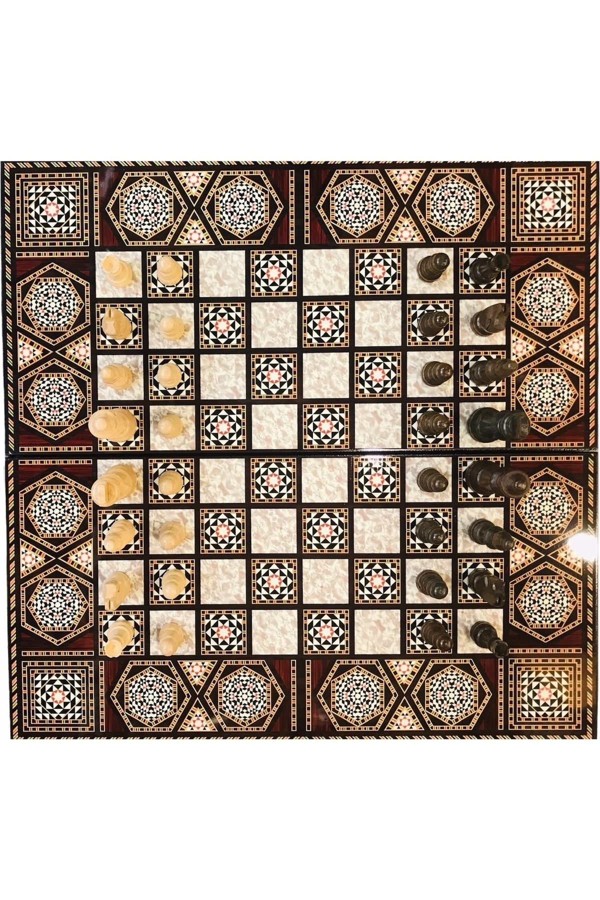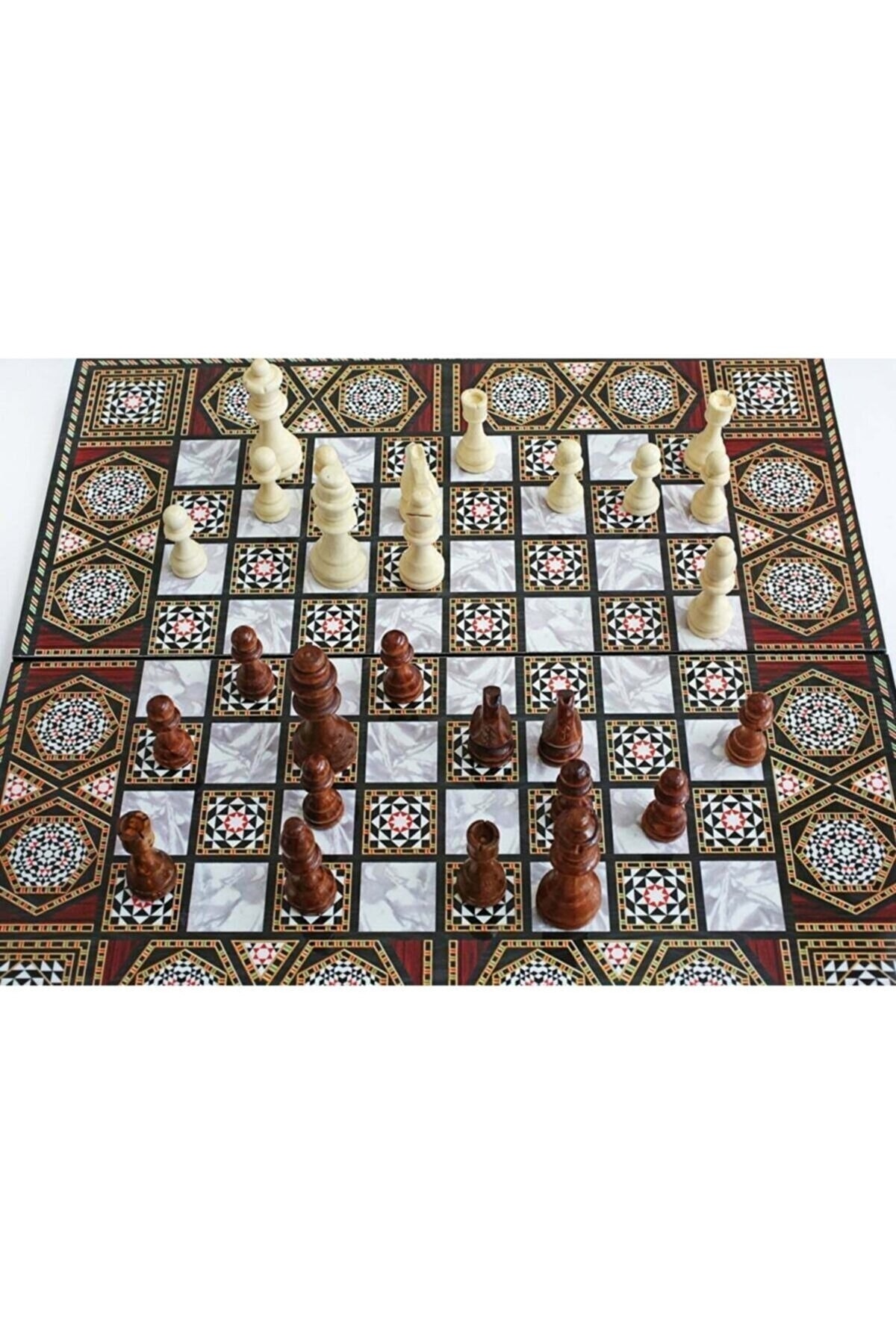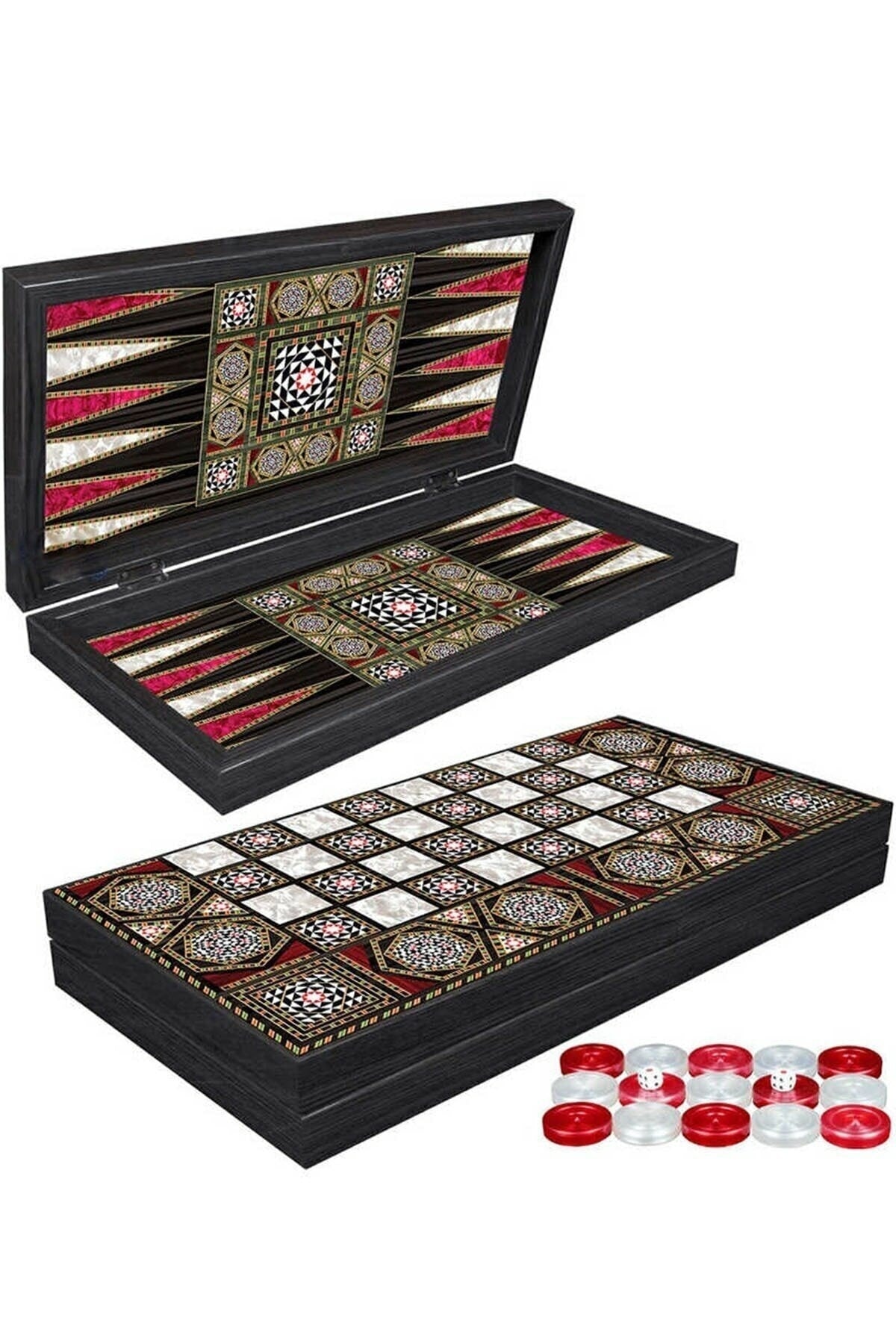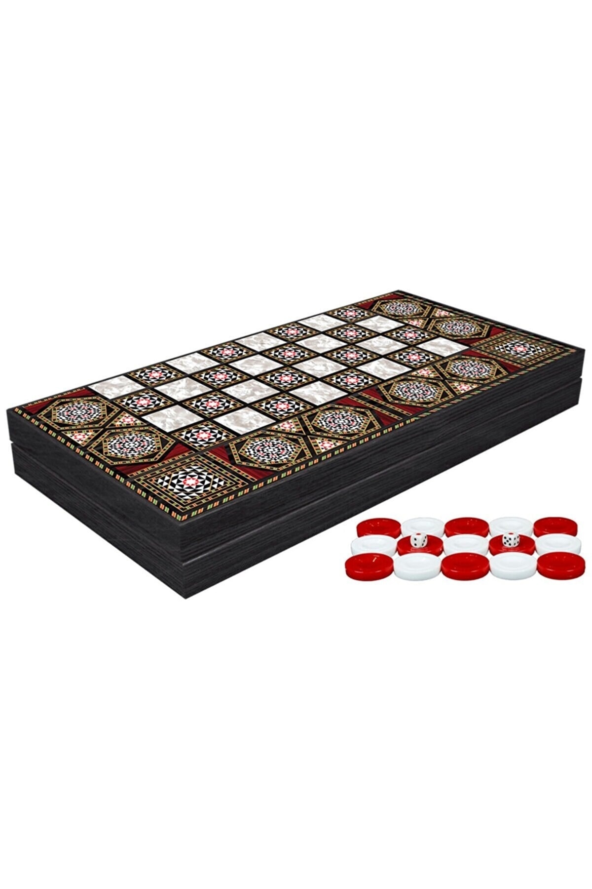 Sedef Tavla Hediyelik Baskı Sedefli Tavla ve Satranç Seti Büyük Boy