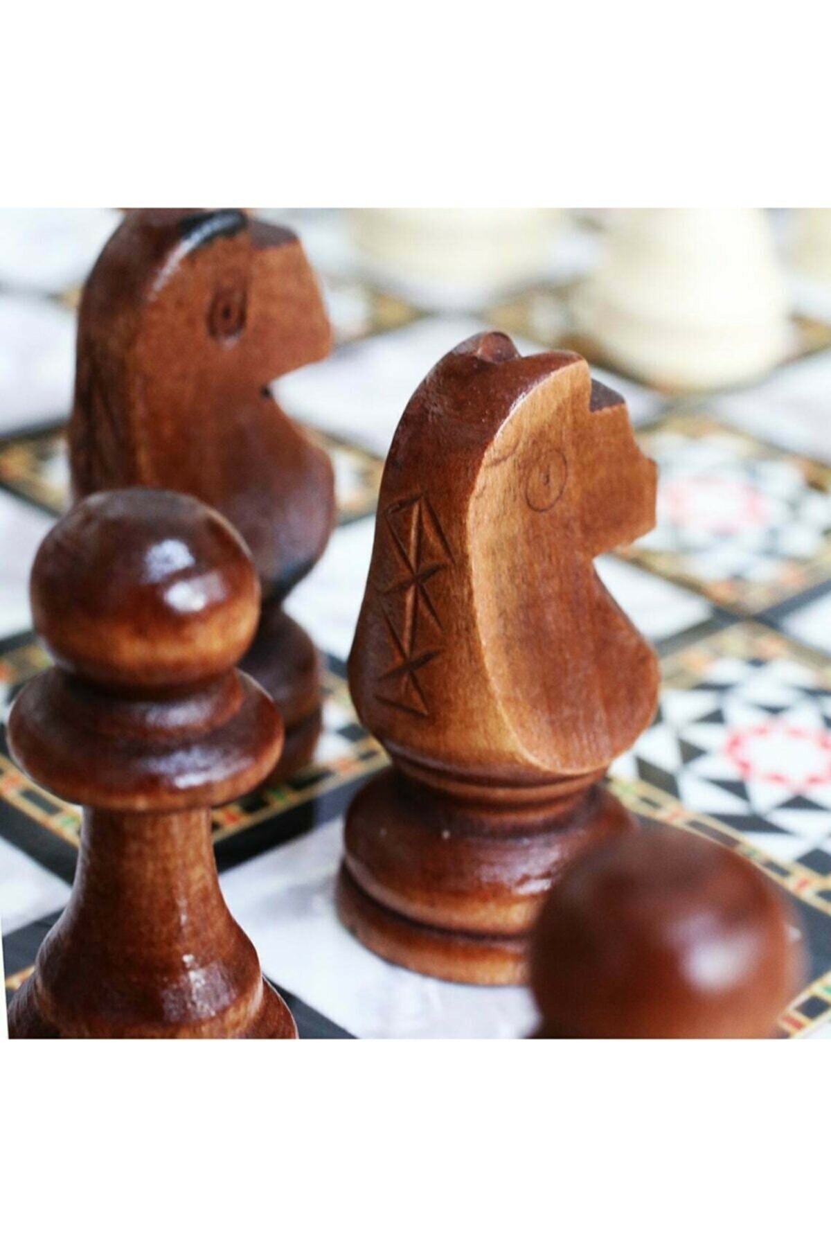 Tavla ile beraber görseldeki kalitel Ahşap Satranç Figürleri ile gelmektedir.