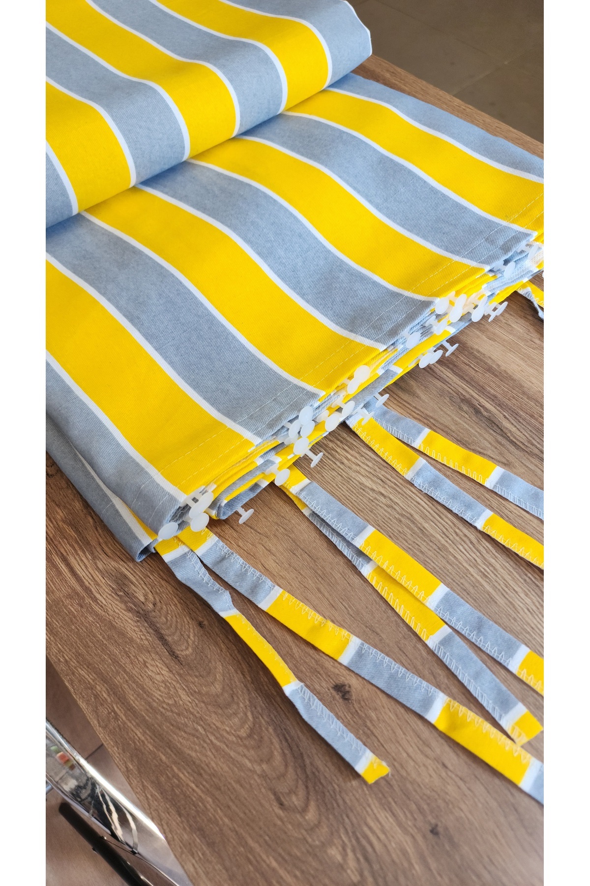 BALKON PERDESİ GRİ KREM ENXBOY ÜST KORNİŞ DÜĞMELİ YANLAR BAĞCIK ALT BAĞCIKLI