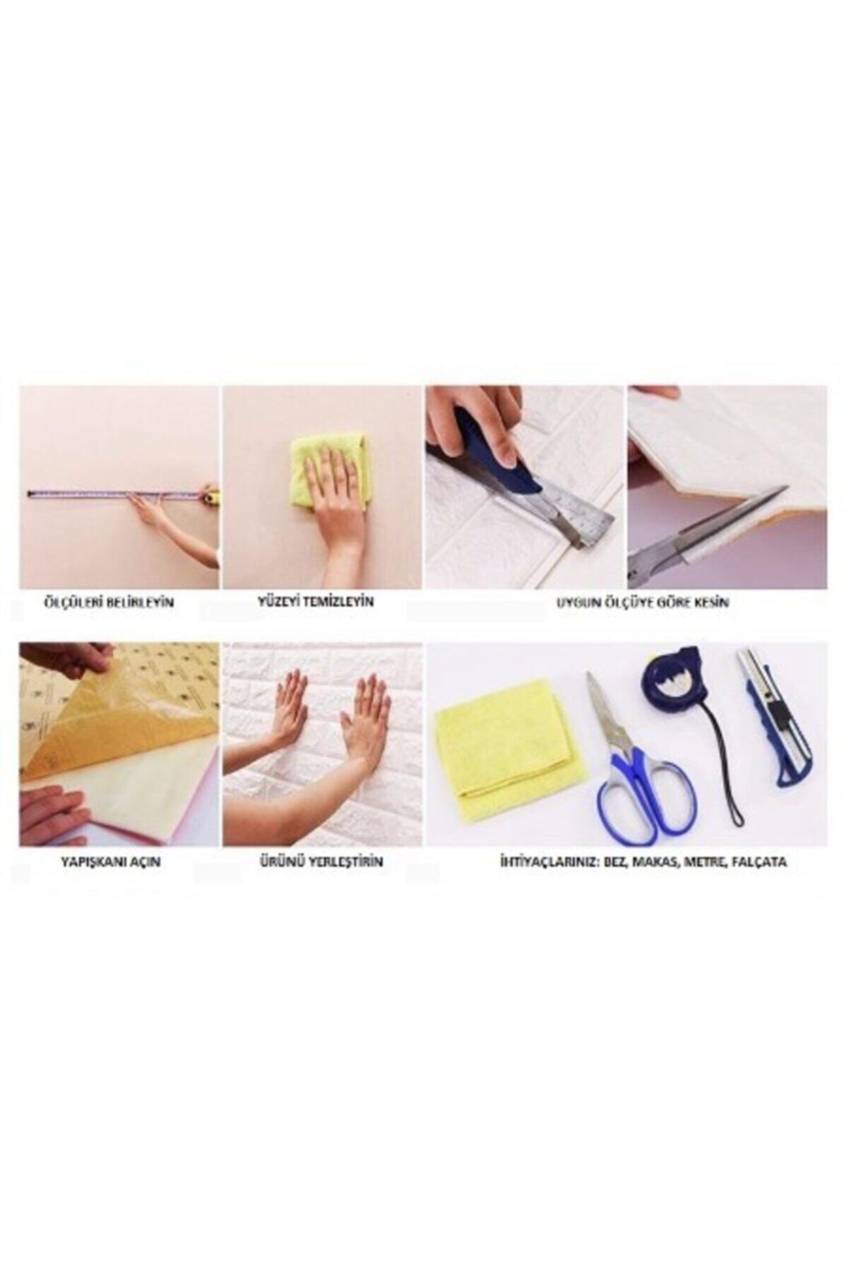 Ürünün bandı açılmış üst tarafı duvardaki ölçüye göre yerleştirilerek yapıştırılır, bant aşağı doğru açılarak aşağı yönlü yapıştırılır
