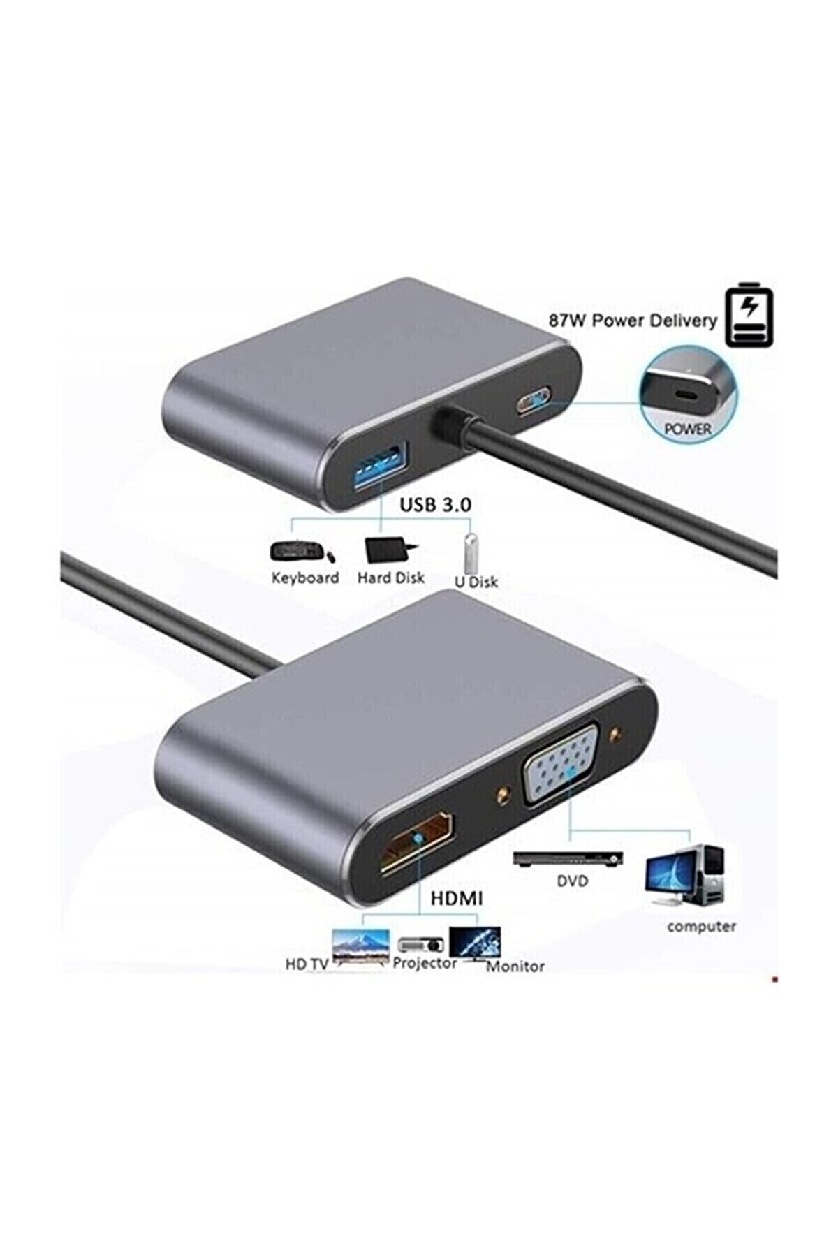 0 1080p HD 4K HDMI VGA PD AUX Ses Girişli Çevirici Hub Adaptör