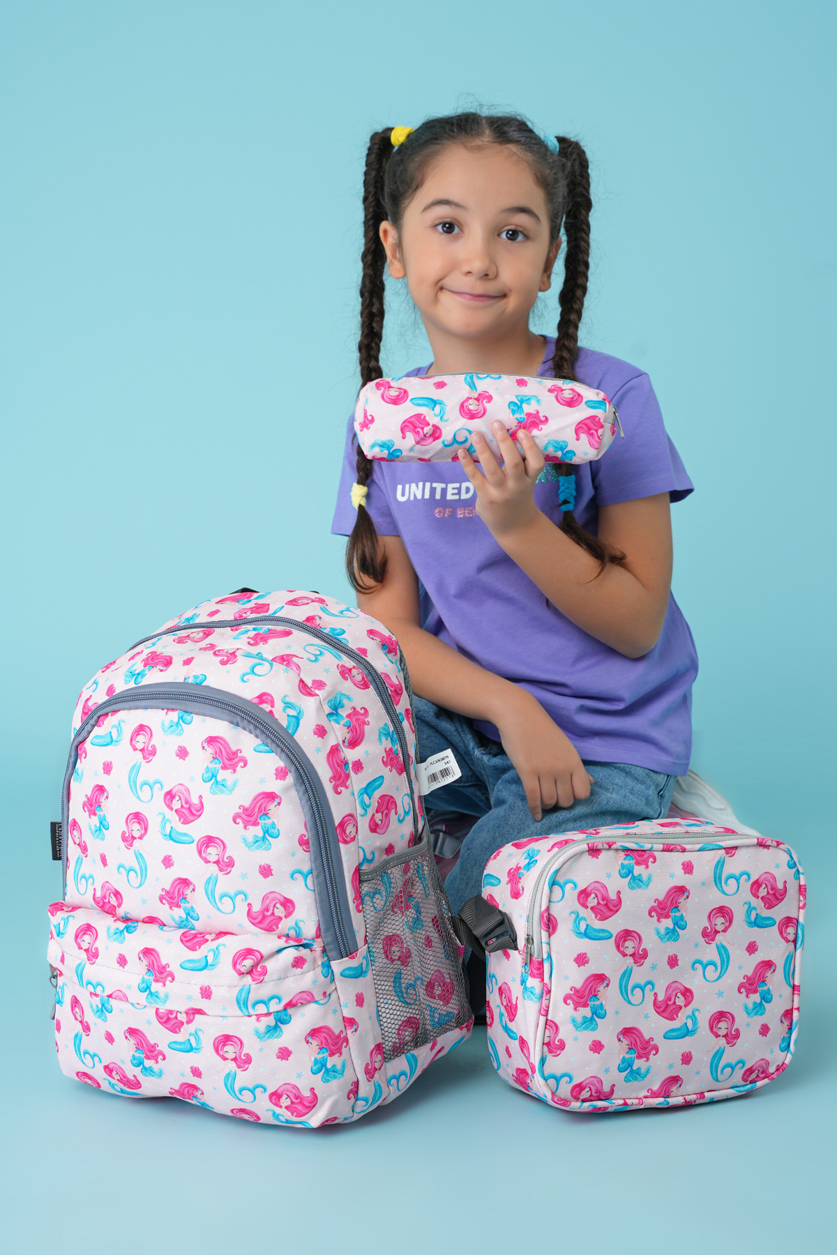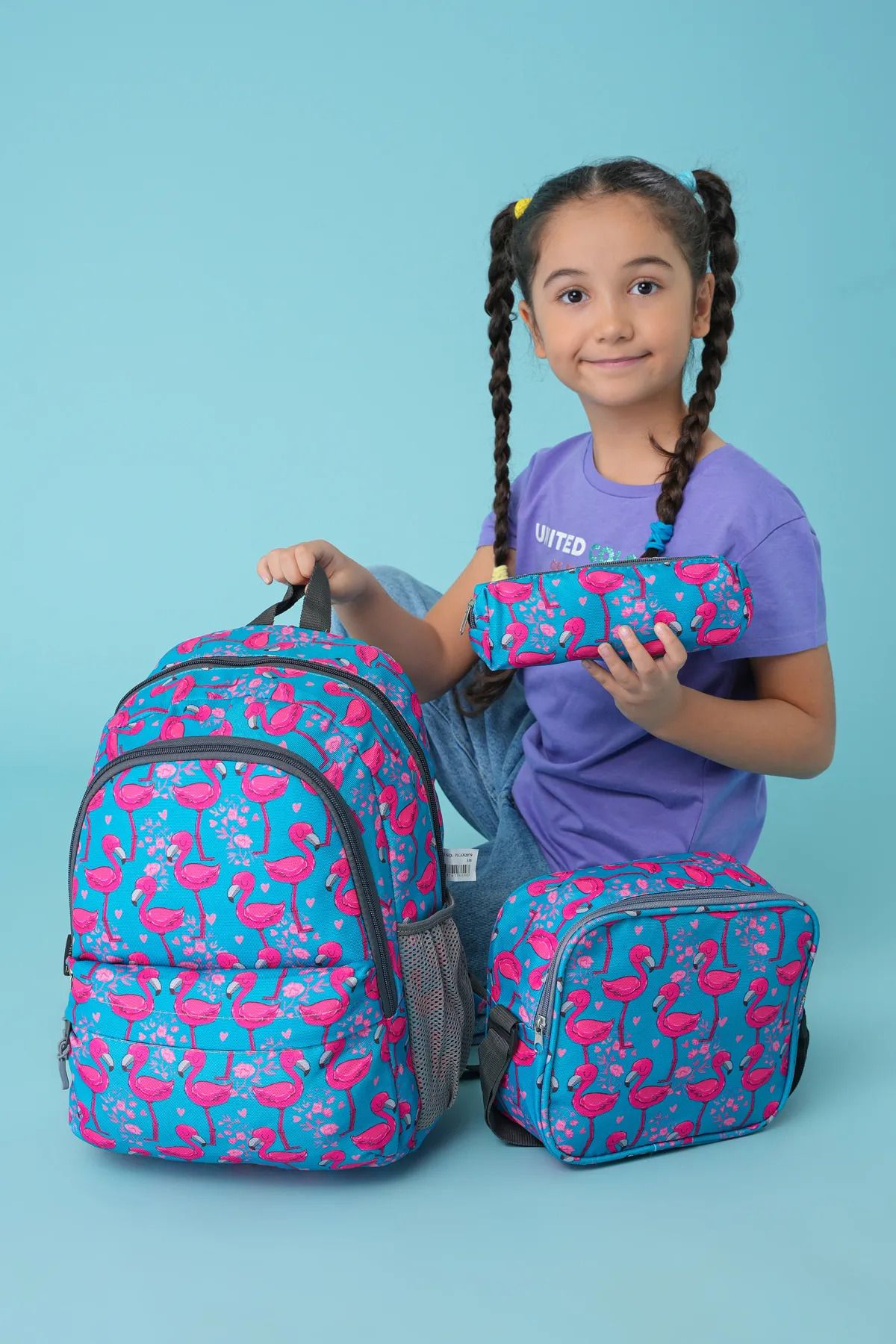 1 adet ilkokul sırt çantası, 1 adet beslenme çantası ve 1 adet kalem çantası bulunur.