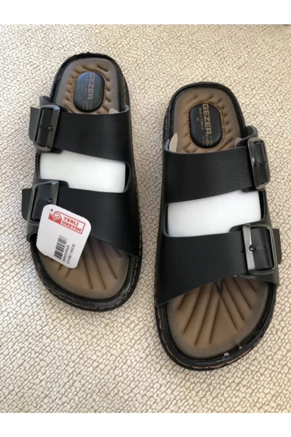 Gezer Çift Tokalı Erkek Masaj Tabanlı Anatomik Terlik Siyah