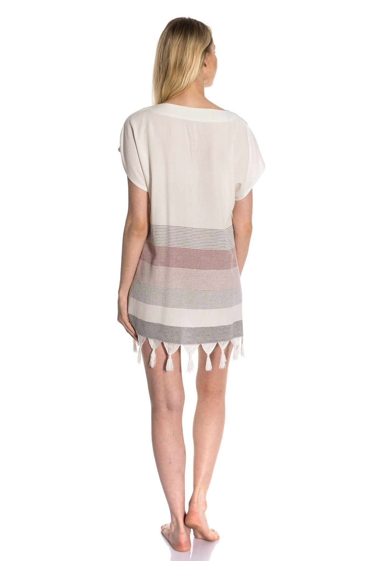 Kumaş – Dokuma: Eski usul kara tezgahlarda %100 ipliği boyalı pamuktan üretilmiştir. Yüksek su emiciliğine sahiptir. Yaz ve bahar mevsimleri için tasarlanmıştır. Plajda giyileceği varsayılarak hafif bir kumaştan dikilmiştir. Hızlı kurur, kuruma sonrası koku yapmaz. Valizde yer kaplamaz, kolay taşınabilir.