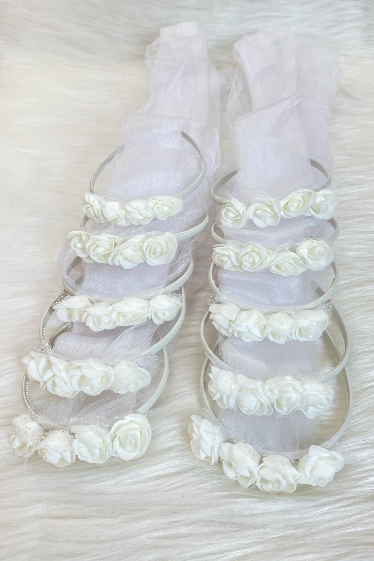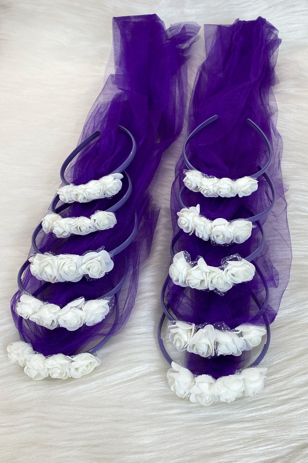 Bordo Nedime Taç Lateks Gül ve Kristal Tül Süslemeli