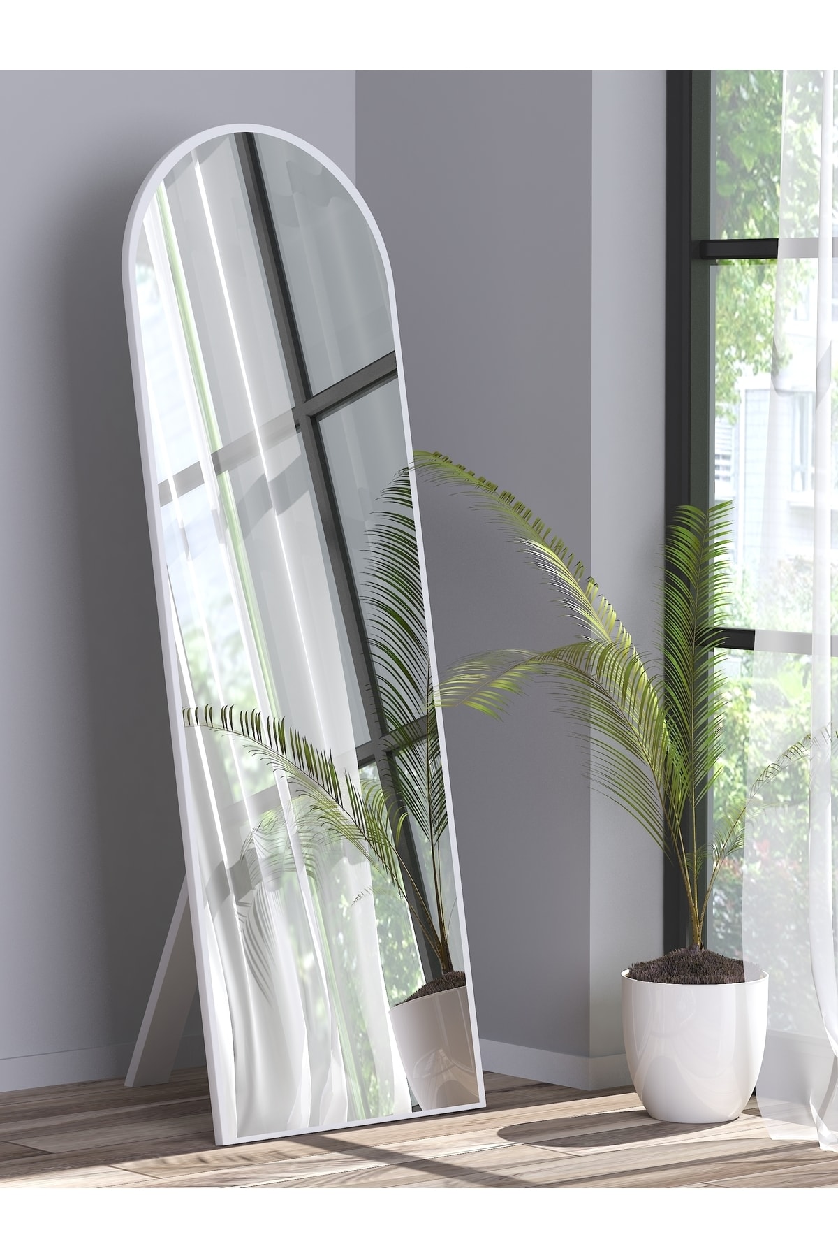 Nice Beyaz Ayaklı Antre Koridor Duvar Salon Banyo Wc Ofis Çocuk Yatak Odası Boy Ayna 50x150 Cm
