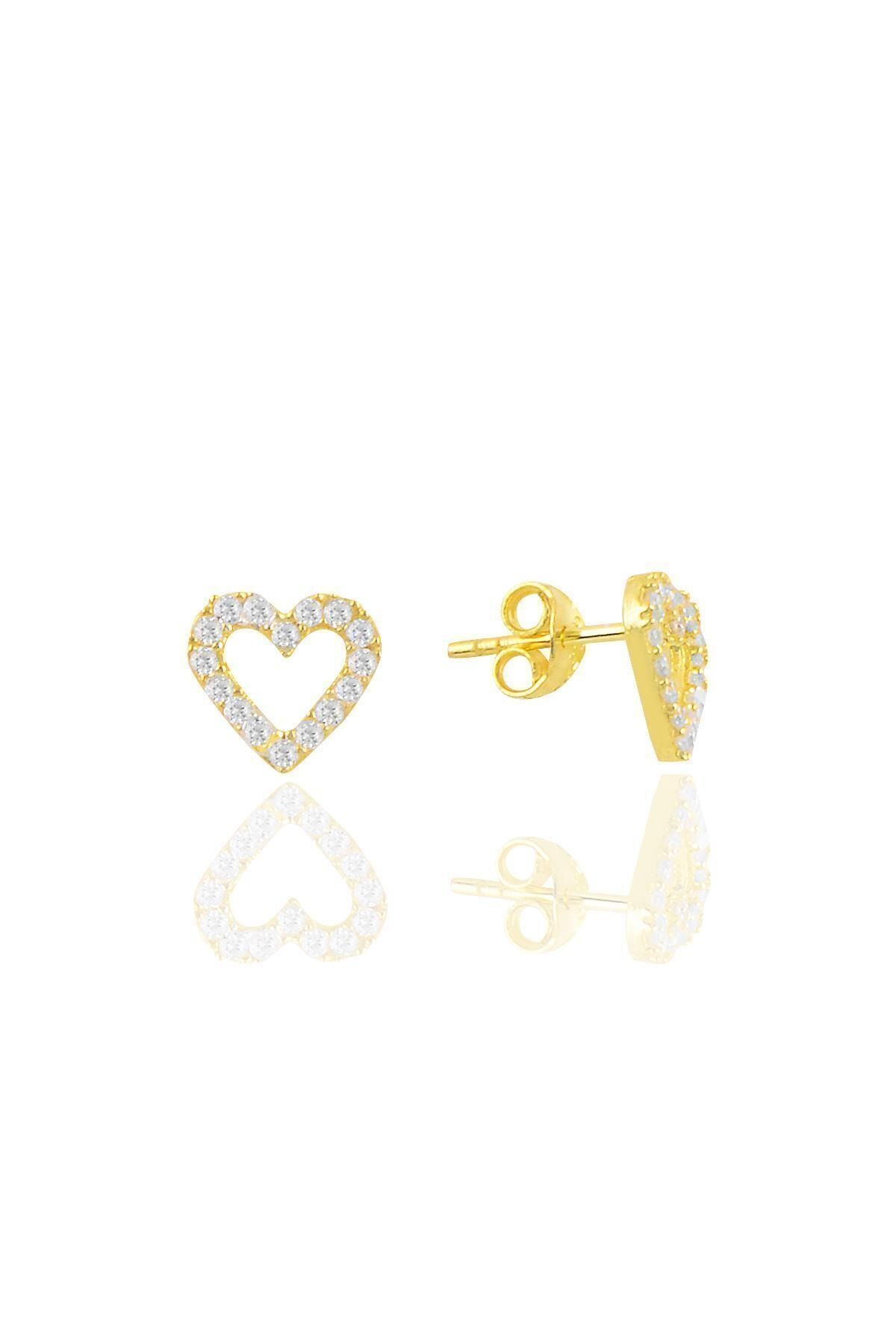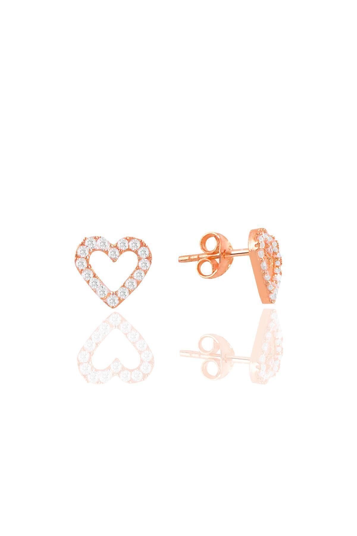 925 ayar gümüş rodyumlu zirkon taşlı içi boş kalp küpe .