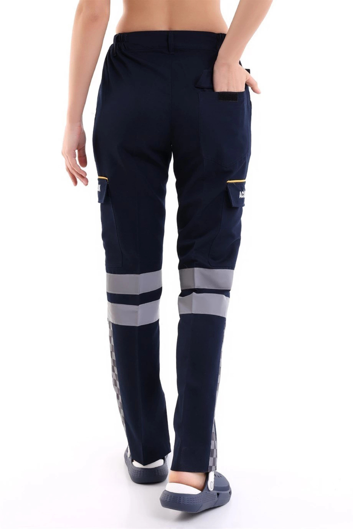Paçalarda 5 er cm lik iki sıra yüksek yansıtıcı özellikli reflektif şerit bulunmaktadır.Ayrıca sağ ve sol yanda dizden aşağıya damalı reflektif şeritler mevcuttur.