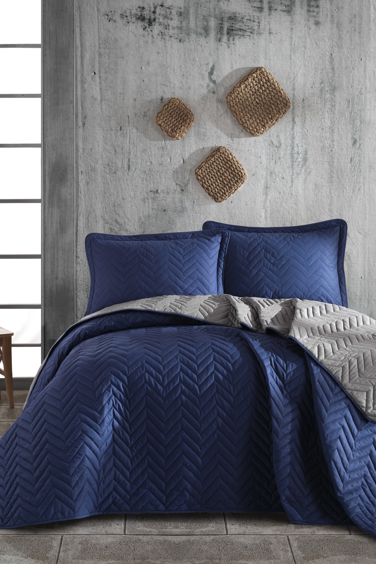 Ebat ve İçerik: Yatak Örtüsü : 260 x 240 cm Kapitoneli Yastık Kılıfı : 50 x 70 cm (2 Adet)