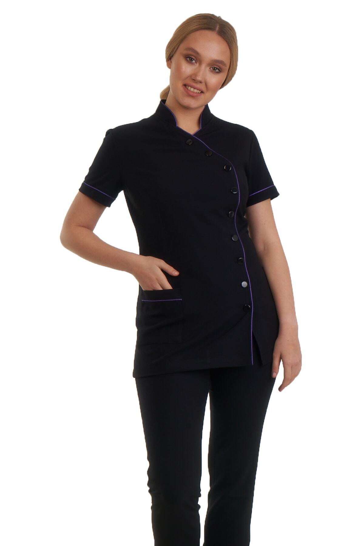 9 Düğmeli Doktor Önlüğü Eczacı Önlüğü Hemşire Önlüğü Estetisyen Önlüğü Kısa Kol Siyah Kadın Önlük