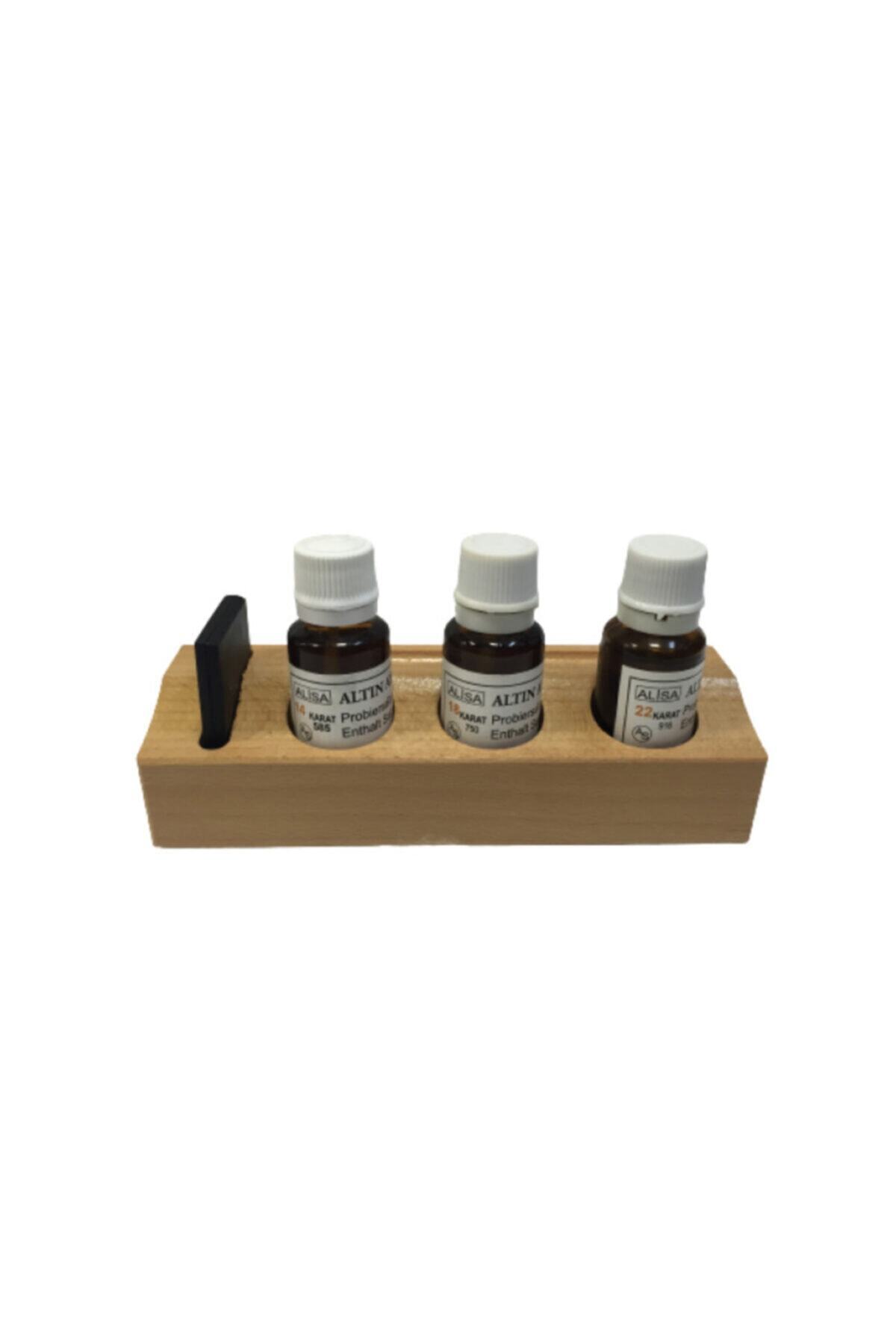 22 ayar suyu,1mihenk taşı ve 3gözlü ayar suyu tahtasından oluşmaktadır